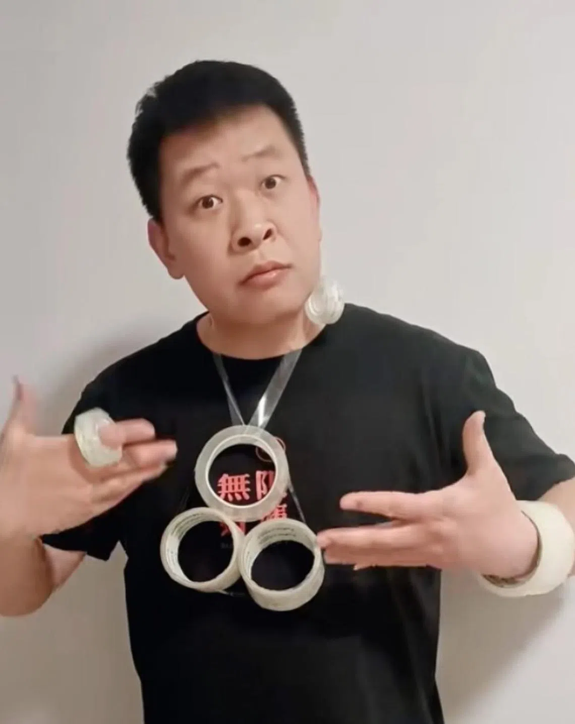 A user on Douyin posted his own video offering a tape ring, tape earring and a three-piece tape necklace.