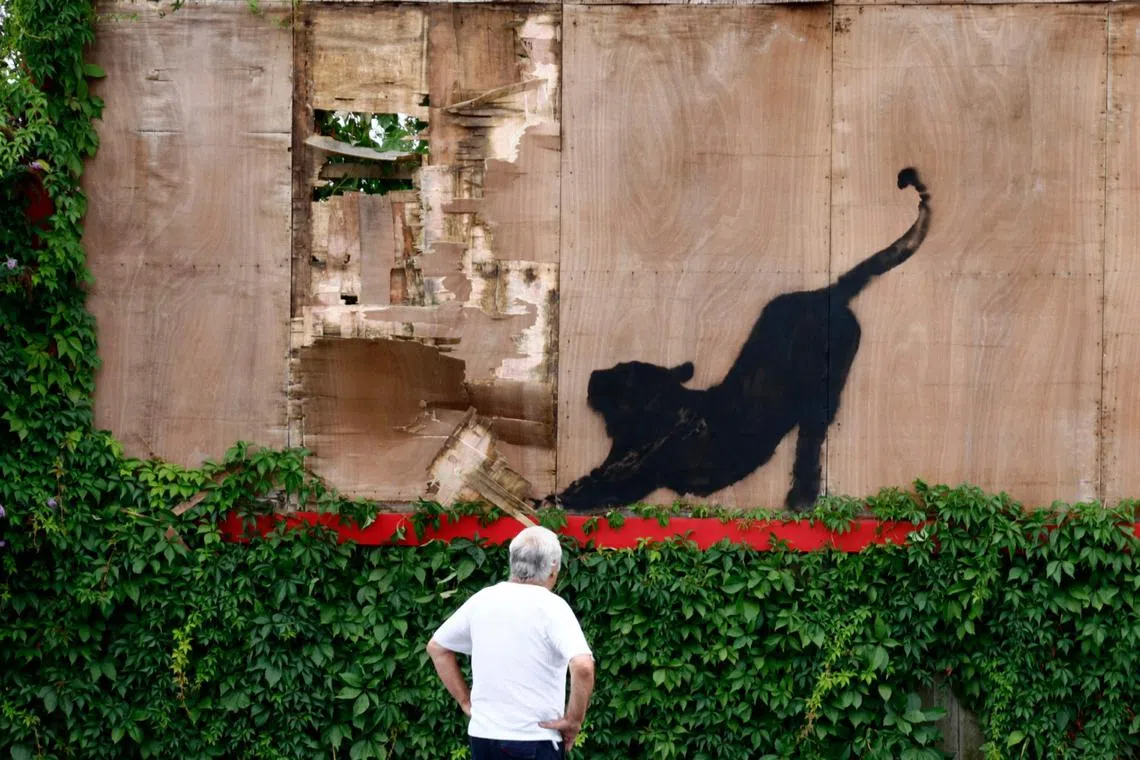 Then on Aug 10, a piece crafted on an empty, distressed advertising billboard – showing a stretching cat – was removed from its location in north-west London by contractors, citing safety reasons.