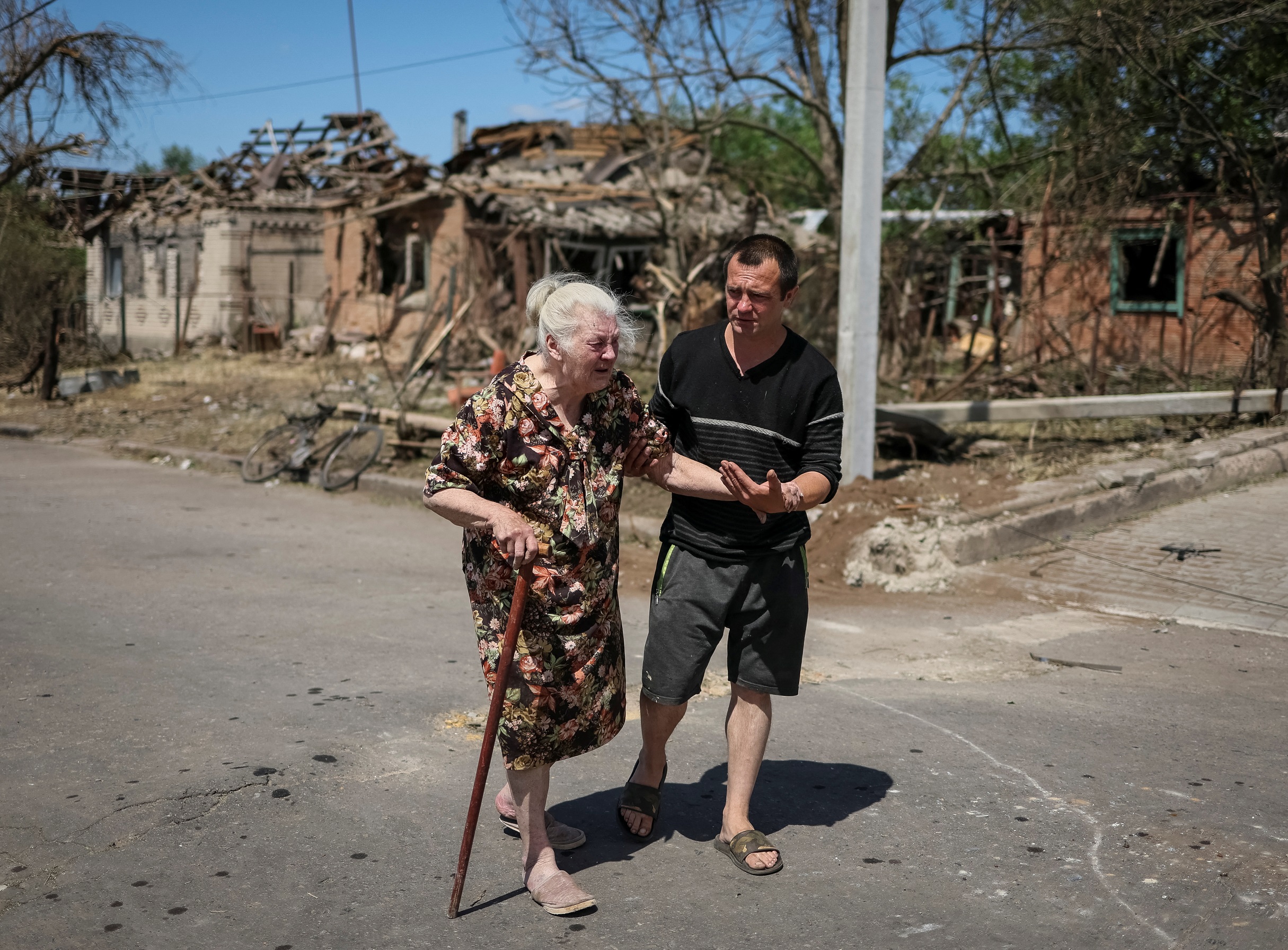 West of Siervierodonetsk in Sloviansk, one of the main Donbas cities still held by Ukraine, women with small children lined up to collect aid while other residents carried buckets of water across the city.