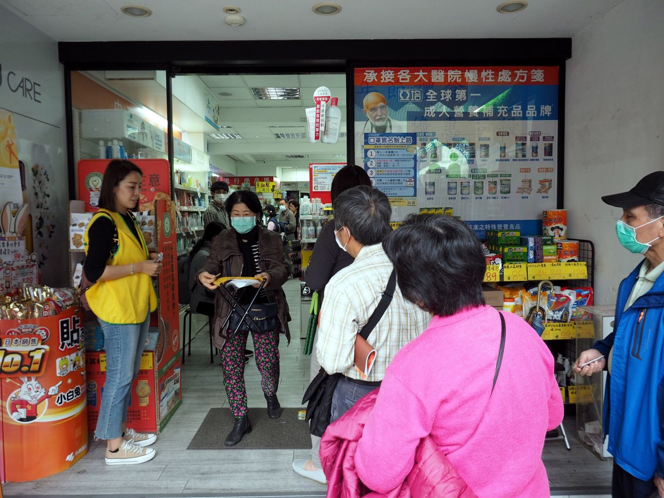 People queue up to buy face masks at a pharmacy in Taipei, Taiwan.