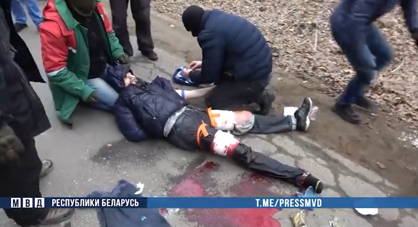 Belarus published video footage of bloodied and bruised men lying on the floor, saying police had shot at them because they resisted arrest.