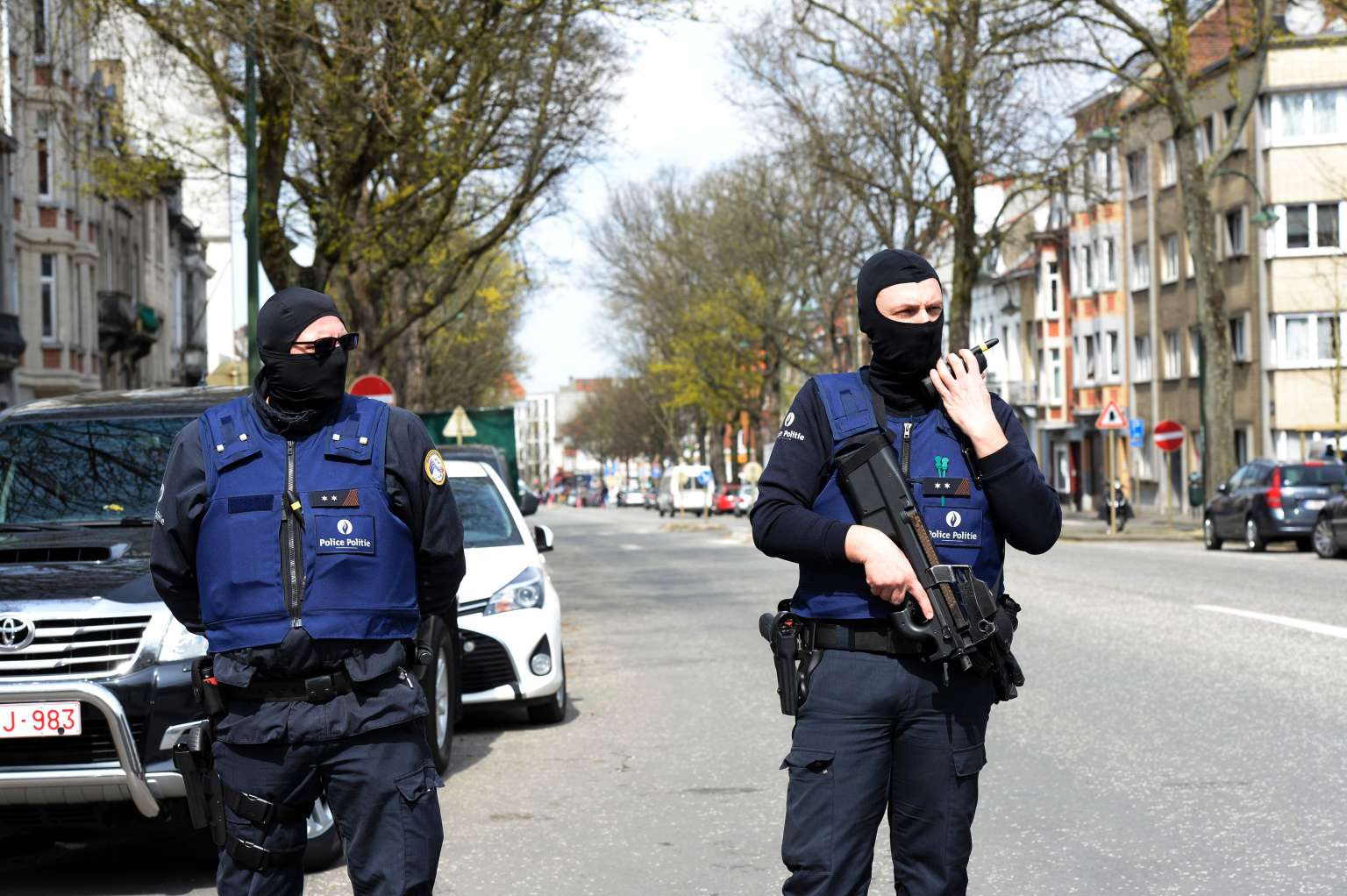 Belgian police officers stand guard in a street in Etterbeek, Belgium on April 9, 2016.