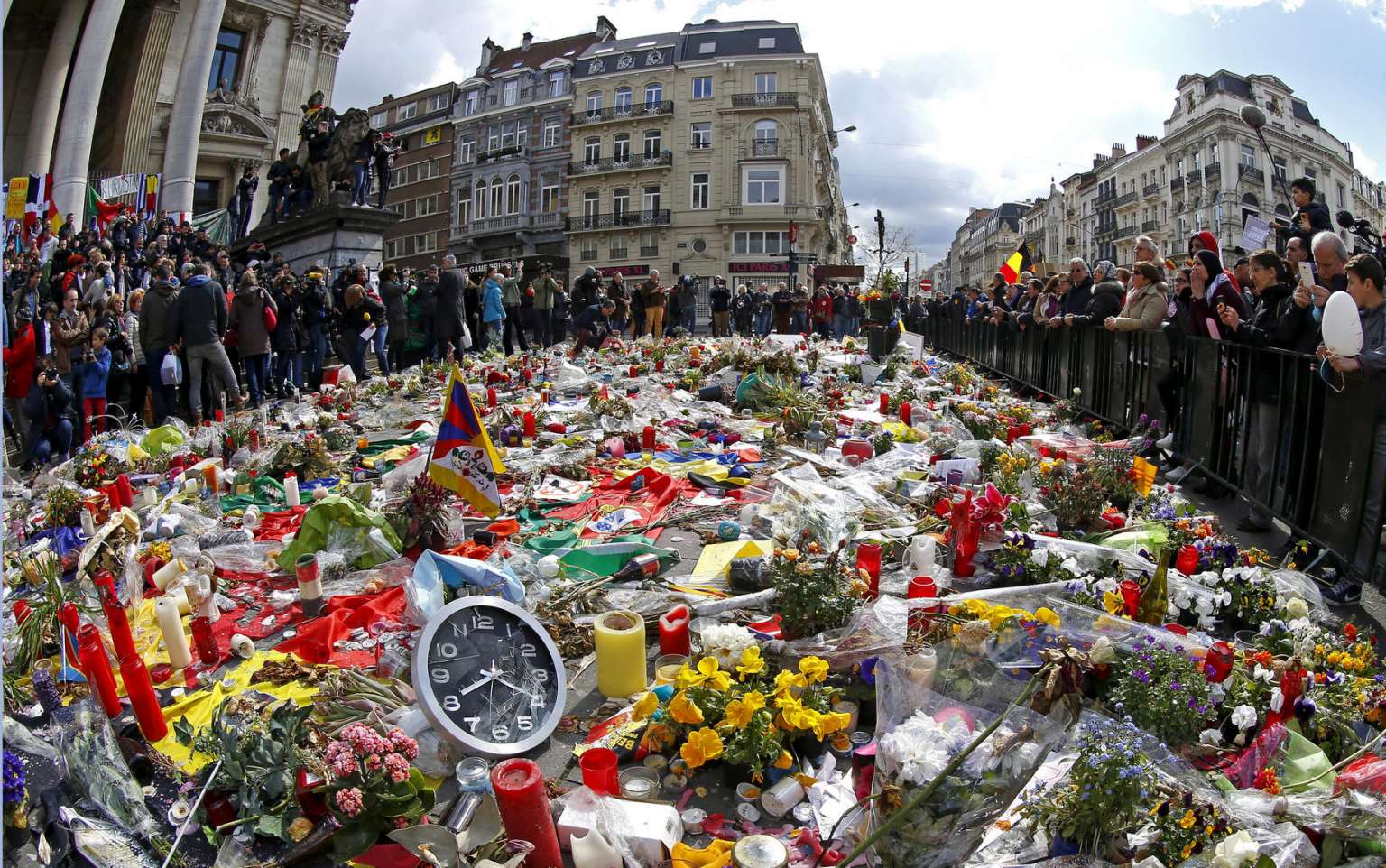People take part in a rally in memory of the victims of the bomb attacks in Brussels metro and Brussels international airport on April 17, 2016.