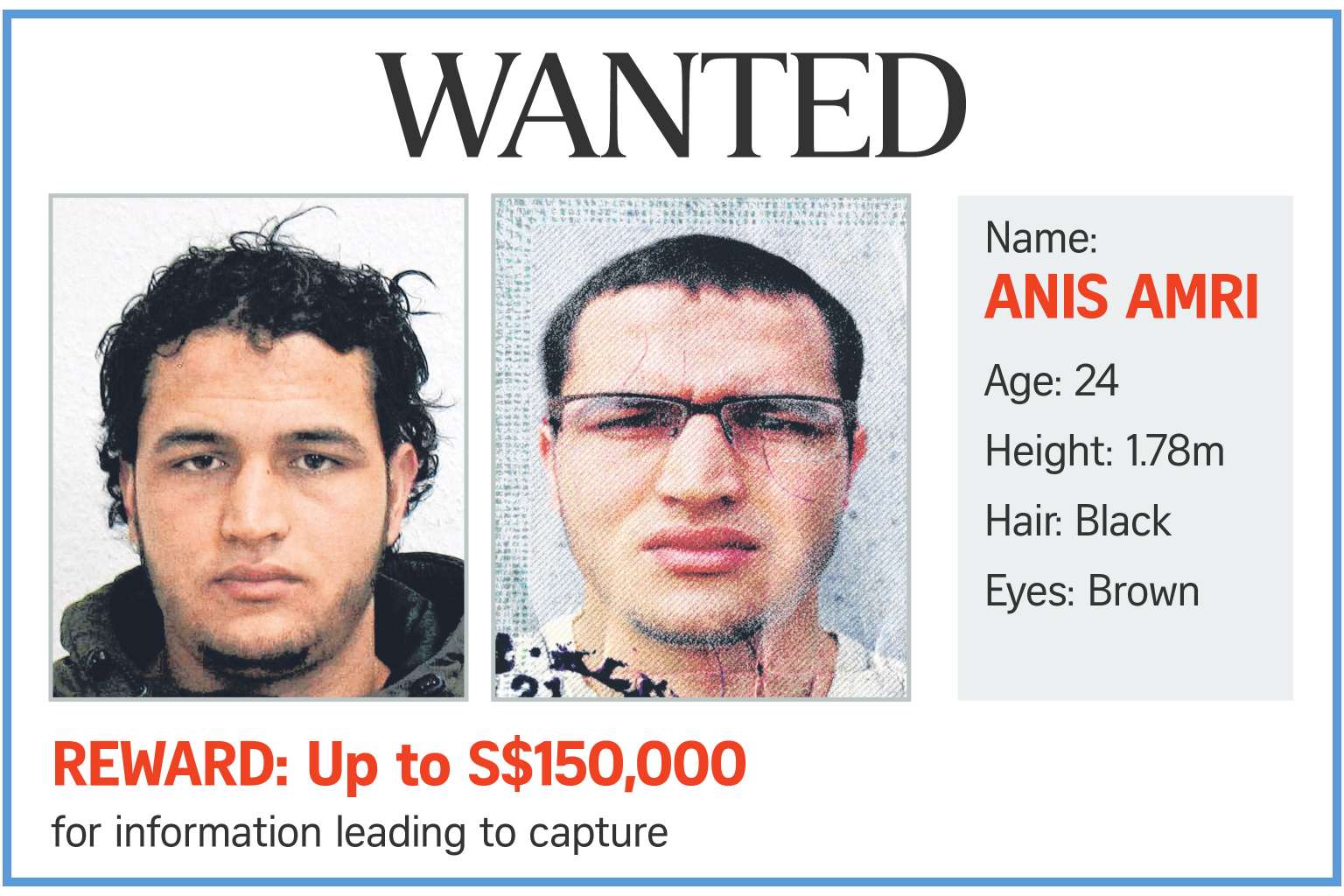 BERLIN (AFP) - As police hunt for Tunisian Anis Amri, the top suspect in Berlin's Christmas market attack, public anger has grown over a catalogue of failures that allowed him to evade arrest or deportation.