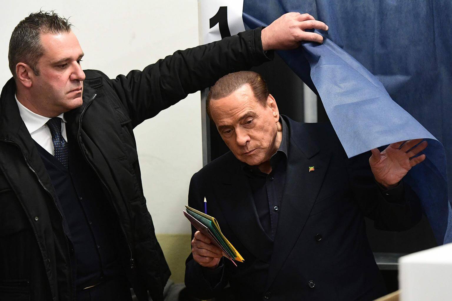 Leader of right-wing party Forza Italia Silvio Berlusconi preparing to vote at a polling station in Milan on March 4, 2018.