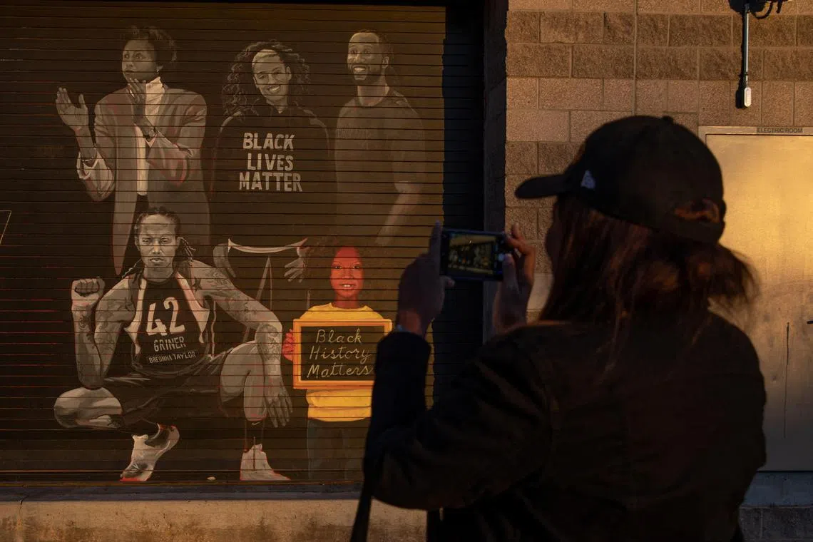 A mural featuring WNBA's Brittney Griner in Arizona. The US swopped her for an arms dealer in a prisoner exchange with Russia.