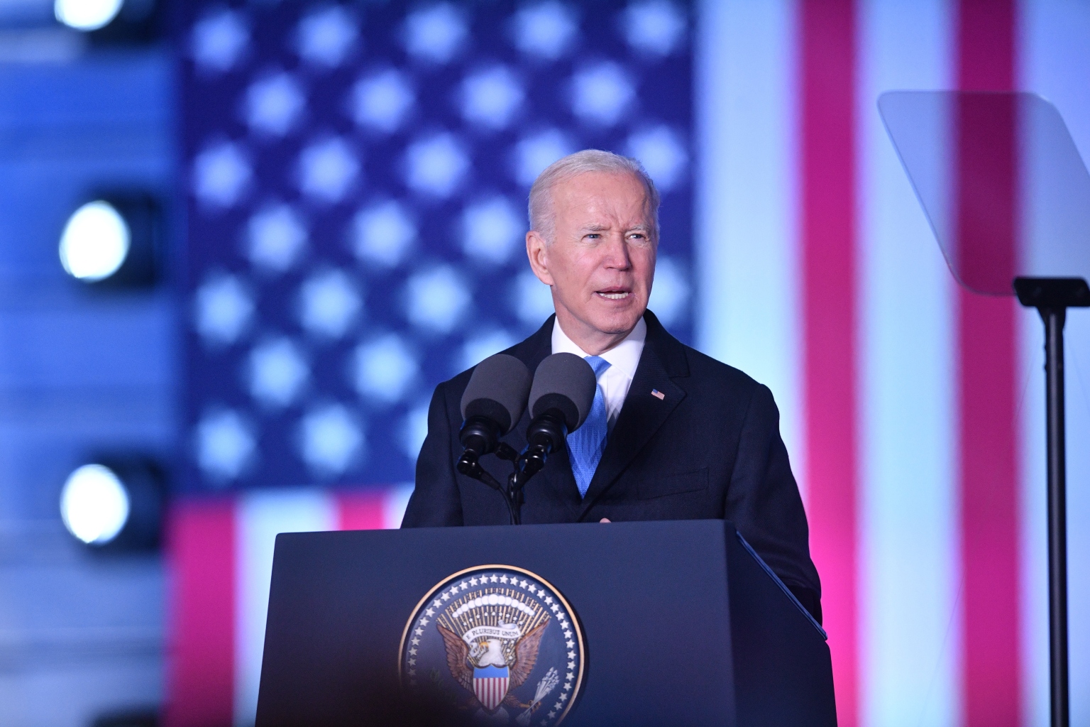 US president Joe Biden delivers a speech at the Royal Castle in Warsaw, Poland, on March 26, 2022.