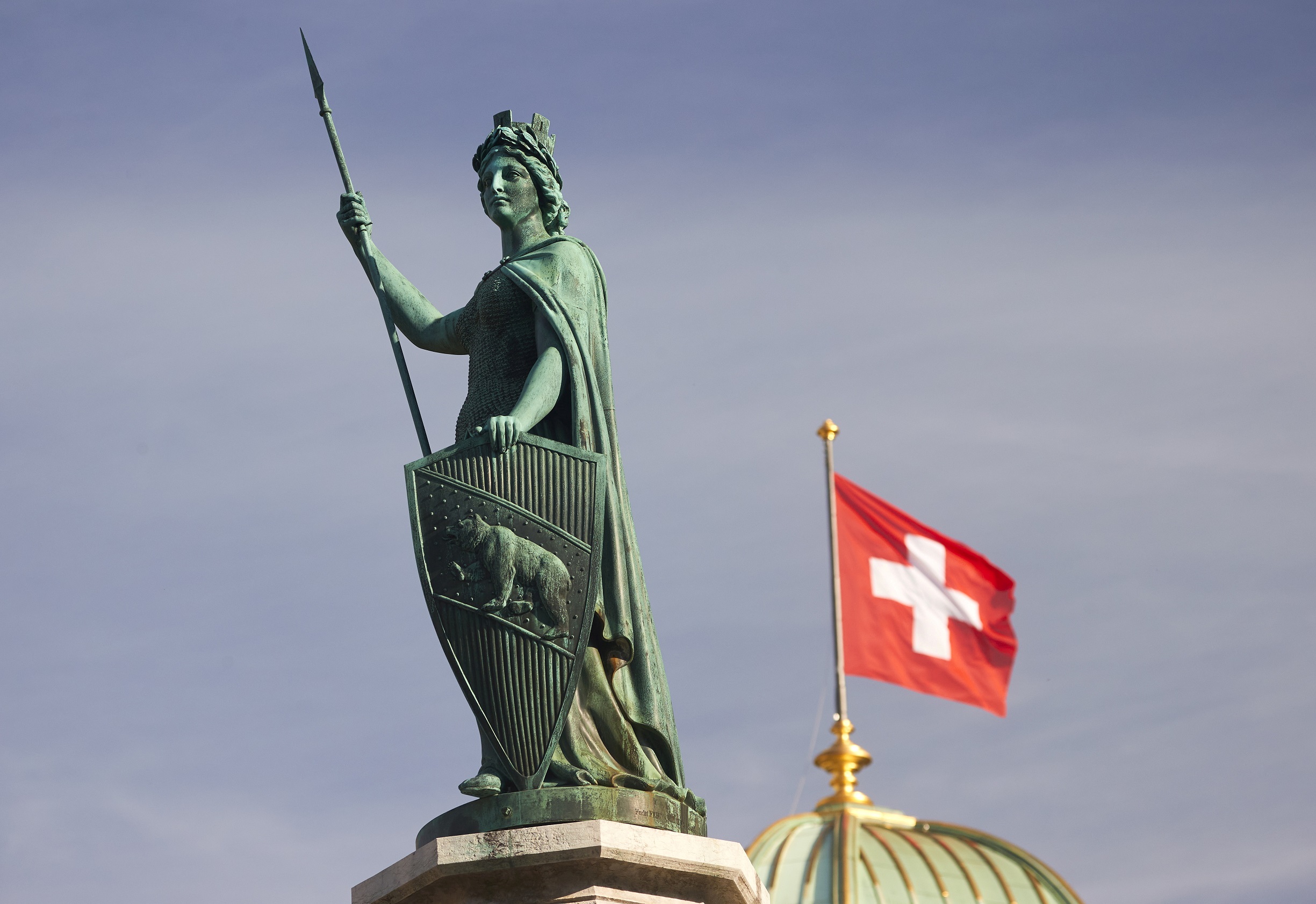 A Swiss flag is pictured over the country's Parliament building in Bern.