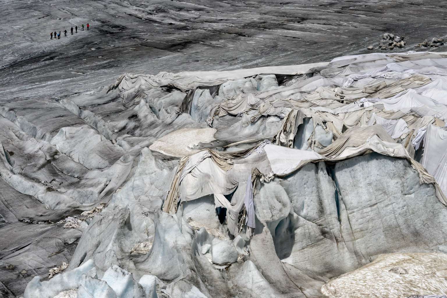 RHONE GLACIER, Switzerland (AFP) - From afar, the Rhone Glacier looks pristine, but on closer inspection the surface is covered with white blankets to slow the melting of the rapidly retreating ice.