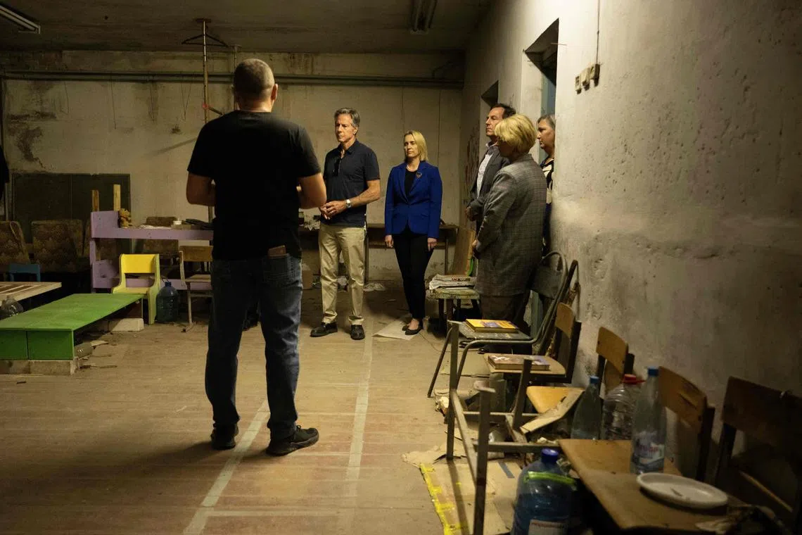 During the visit, Mr Blinken went to see a school basement in Yahidne, where Russian troops kept dozens of villagers including elderly people and children captive.