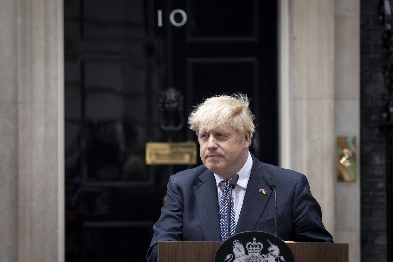 British Prime Minister Boris Johnson making a statement at 10 Downing Street in London on July 7, 2022.