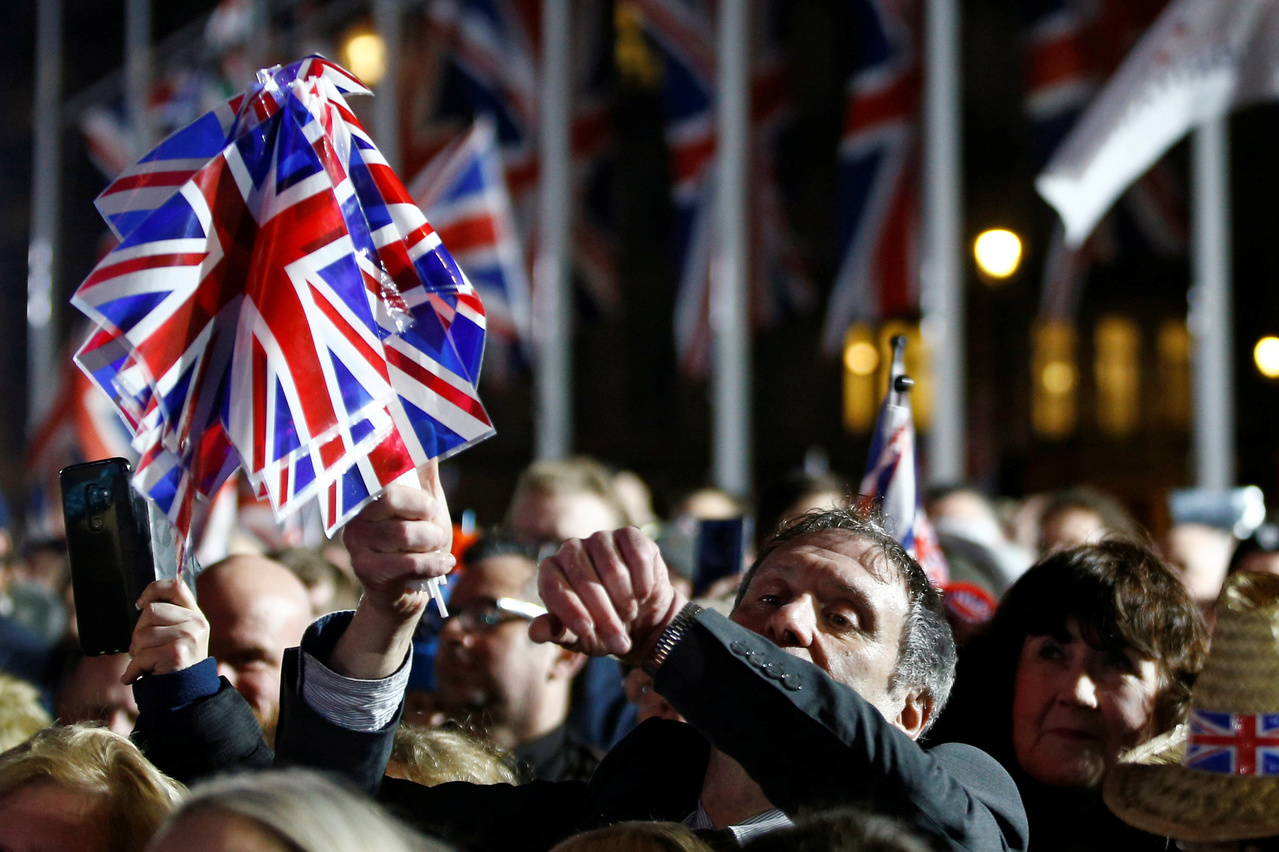 Thousands of Brexit supporters gathered outside the British Parliament, waving flags, singing and revelling in a mix of nostalgia, patriotism and defiance.