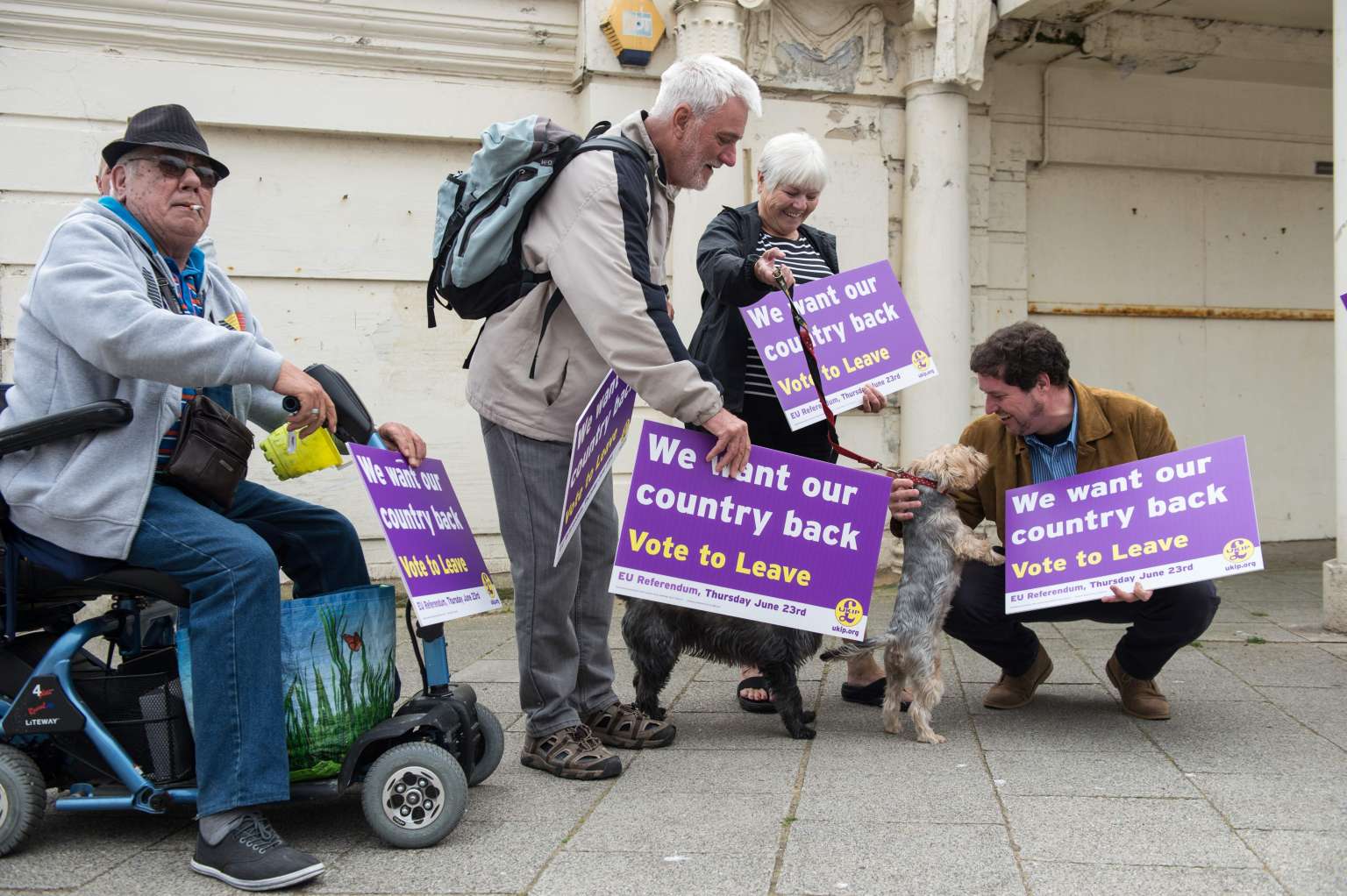 UK Independence Party supporters await the arrival of leader Nigel Farage as he goes on the campaign trail for Brexit in Ramsgate, on June 13, 2016.