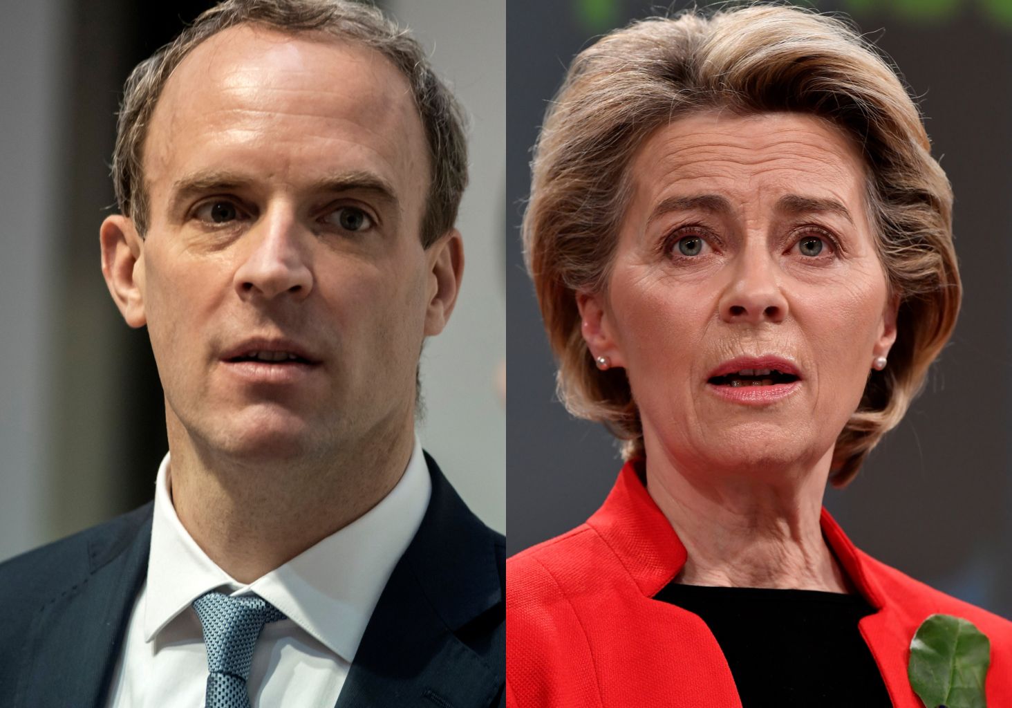 Britain's Dominic Raab (left) called for the EU's Ursula von der Leyen (right) to explain her comments.on banning exports.