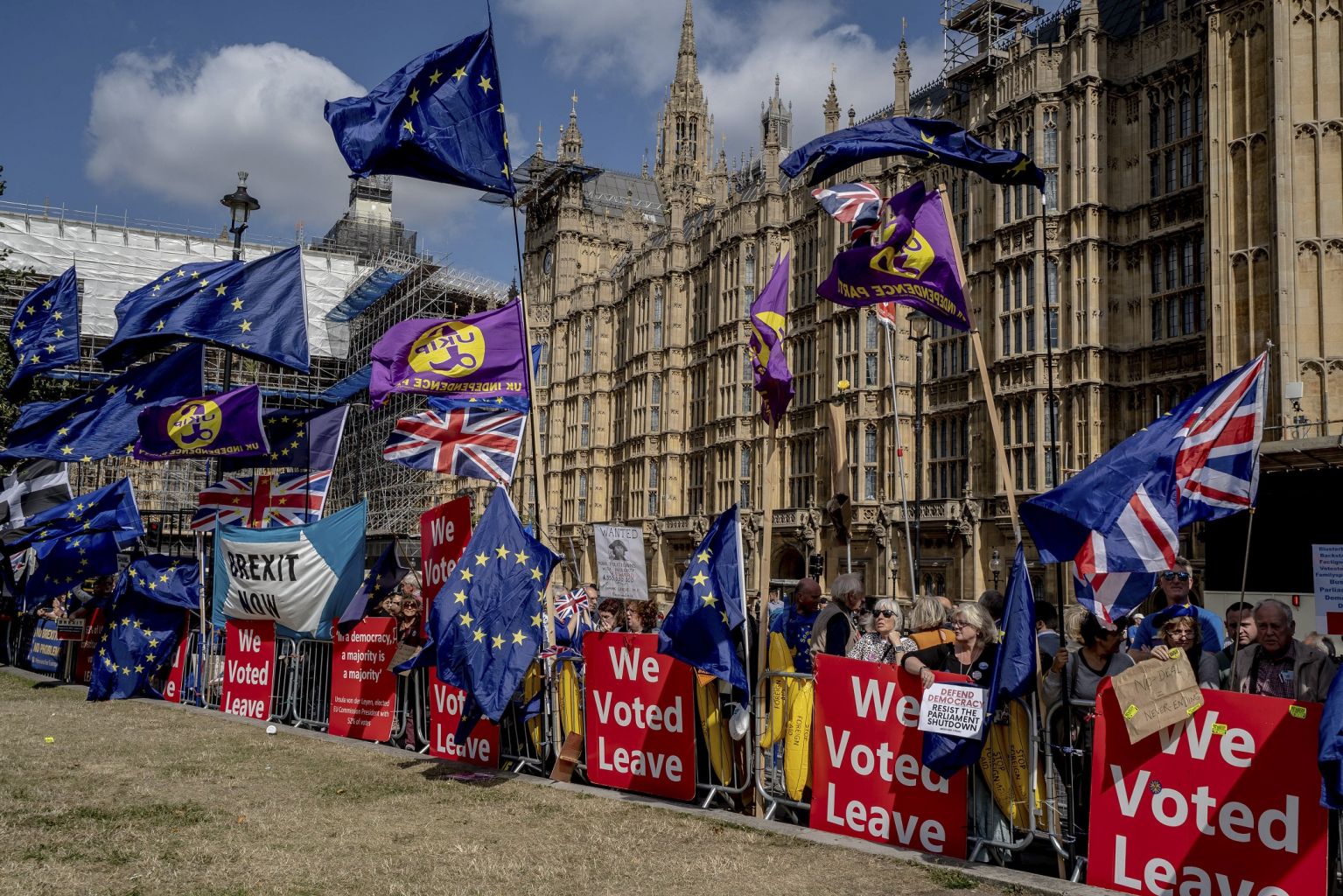 A 2019 photo shows supporters and opponents of Brexit outside Parliament in London.