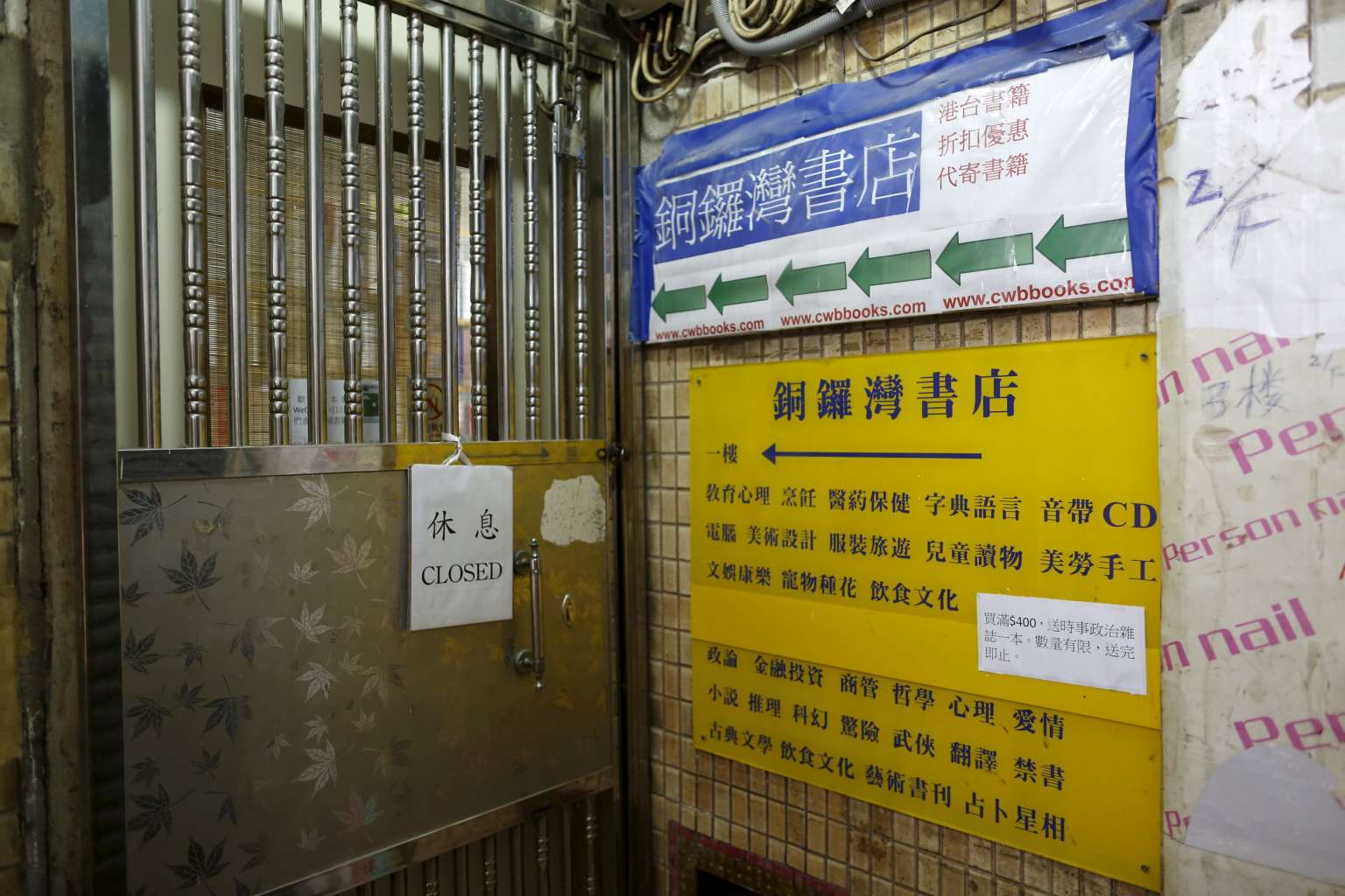 A closed sign is seen outside the Causeway Bay Book in Hong Kong, China on Jan 1, 2016.