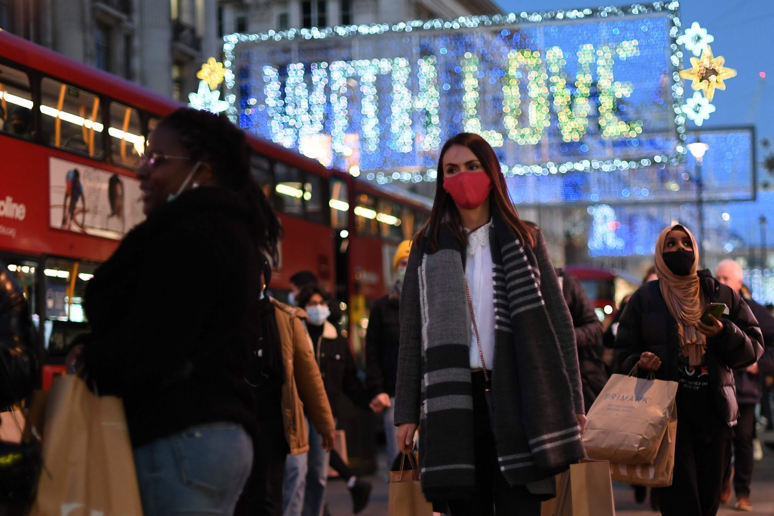 Shoppers walk along Regent Street, in the main high-street shopping area of London, on Dec 15, 2020.