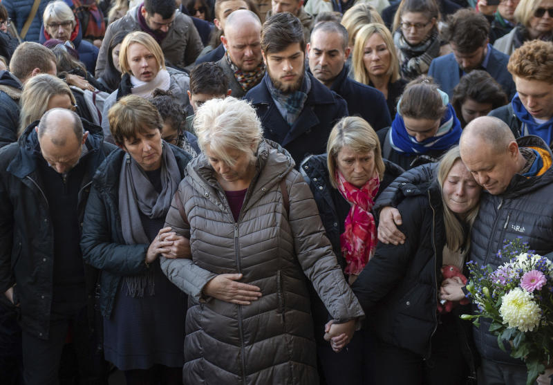 The family of Jack Merritt take part in a vigil in London on Dec 2, 2019, to honour him and Saskia Jones, who were both killed in the London Bridge terror attack.