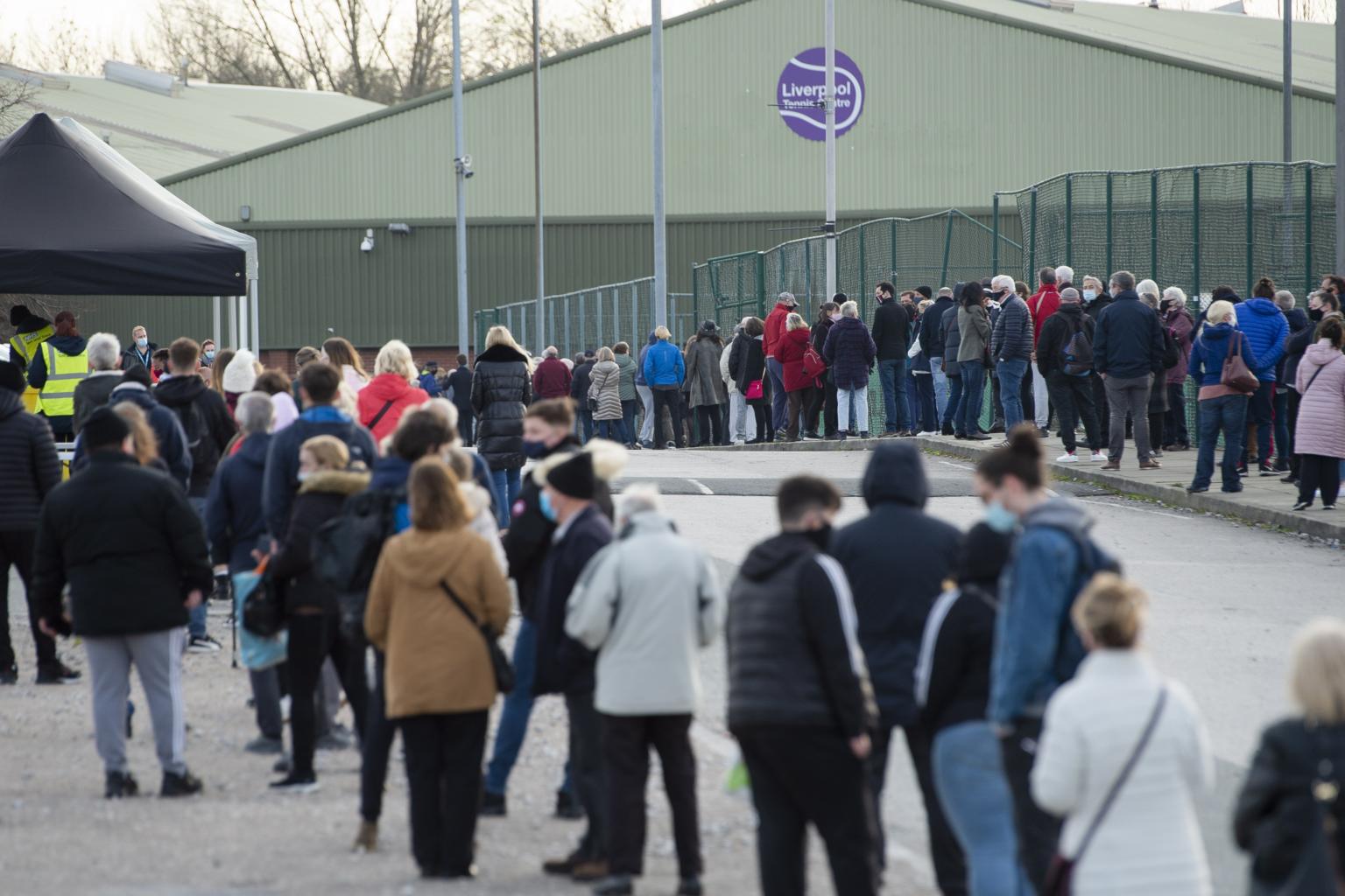 People queue to be tested for Covid-19 as part of "Operation Moonshot" in Liverpool on Nov 6, 2020.