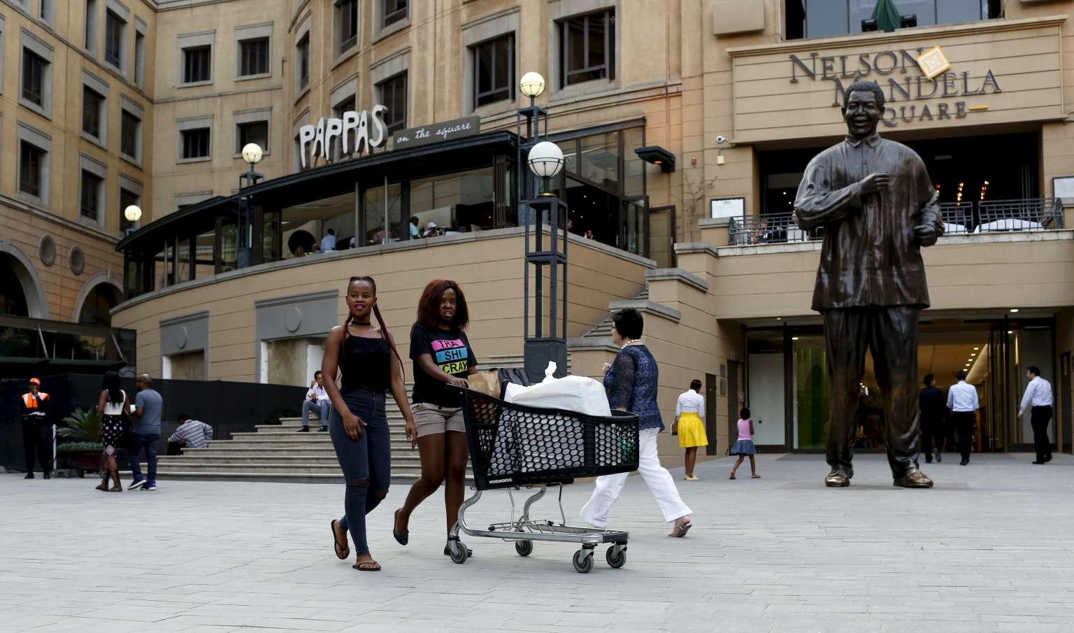 Shoppers push trolleys at an upmarket shopping mall in Sandton, Johannesburg, on Sept 23, 2015.