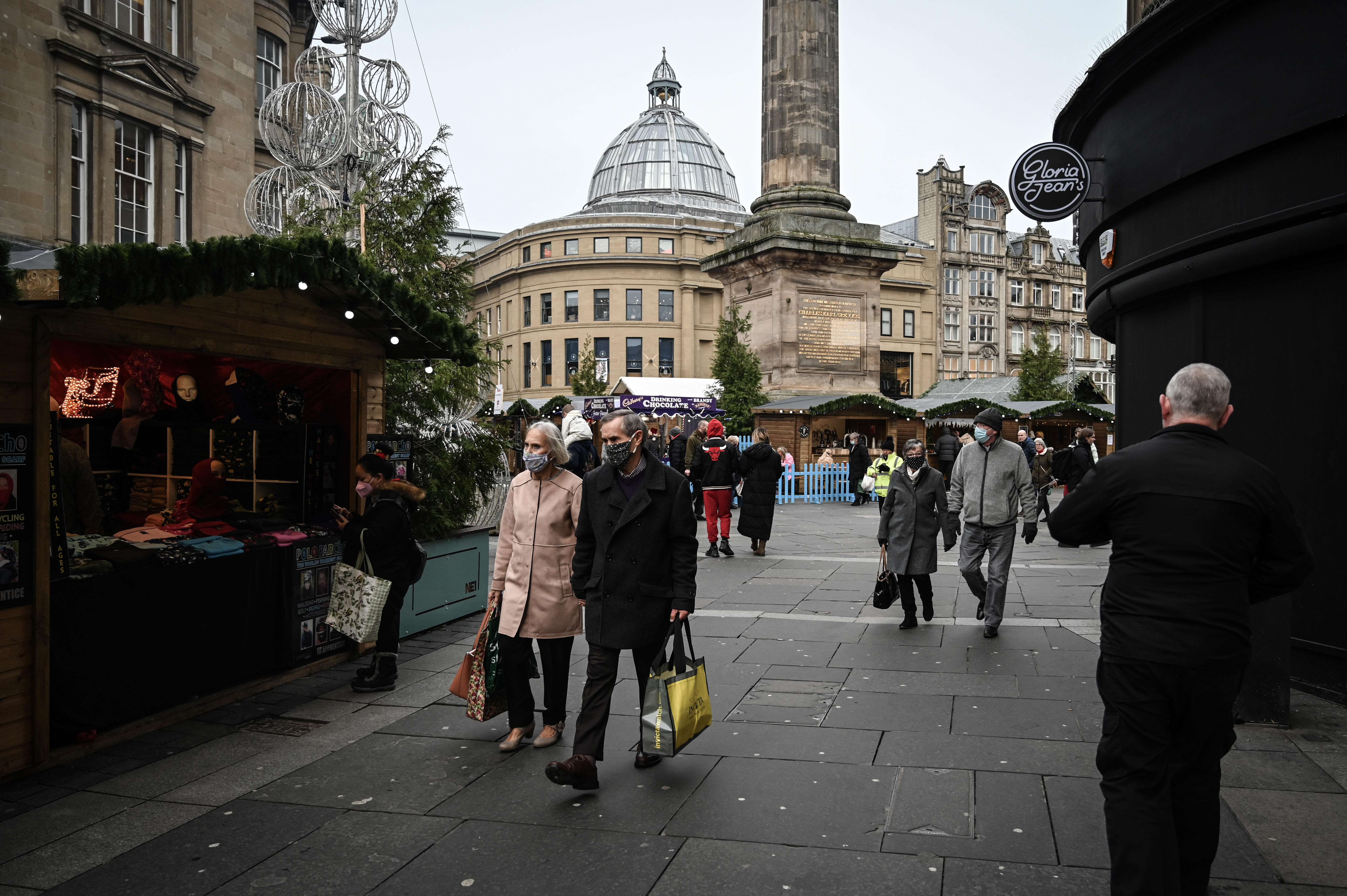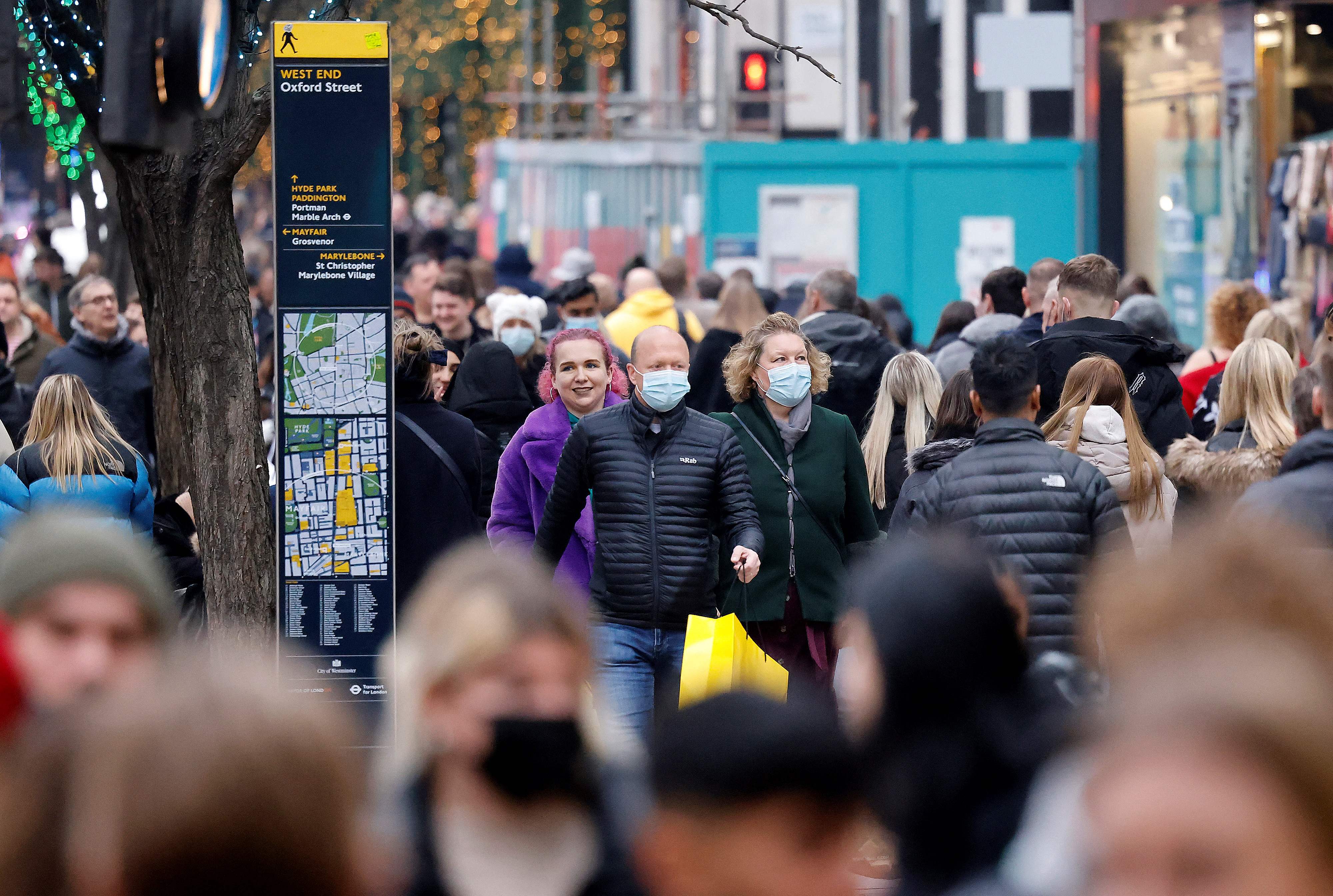 People walking with masks in Manchester, England, on Dec 13, 2021.