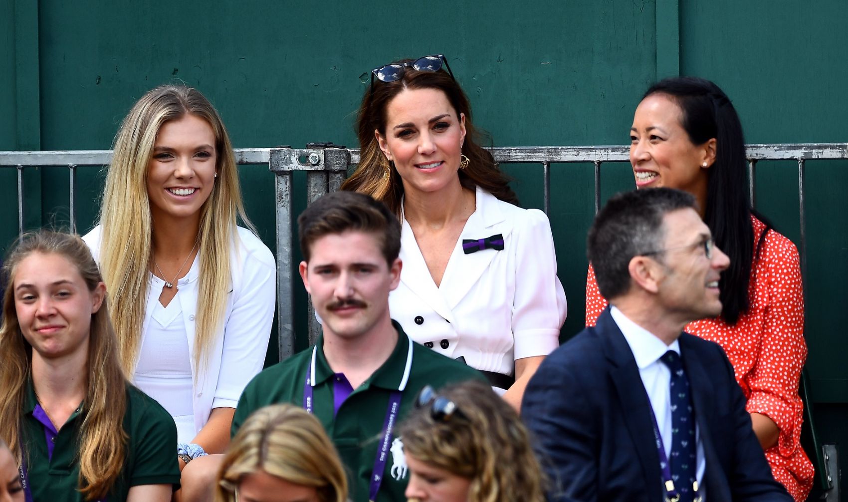 Wearing sunglasses and a white dress, Kate sat alongside Britain's Fed Cup captain Anne Keothavong and British number three Katie Boulter.