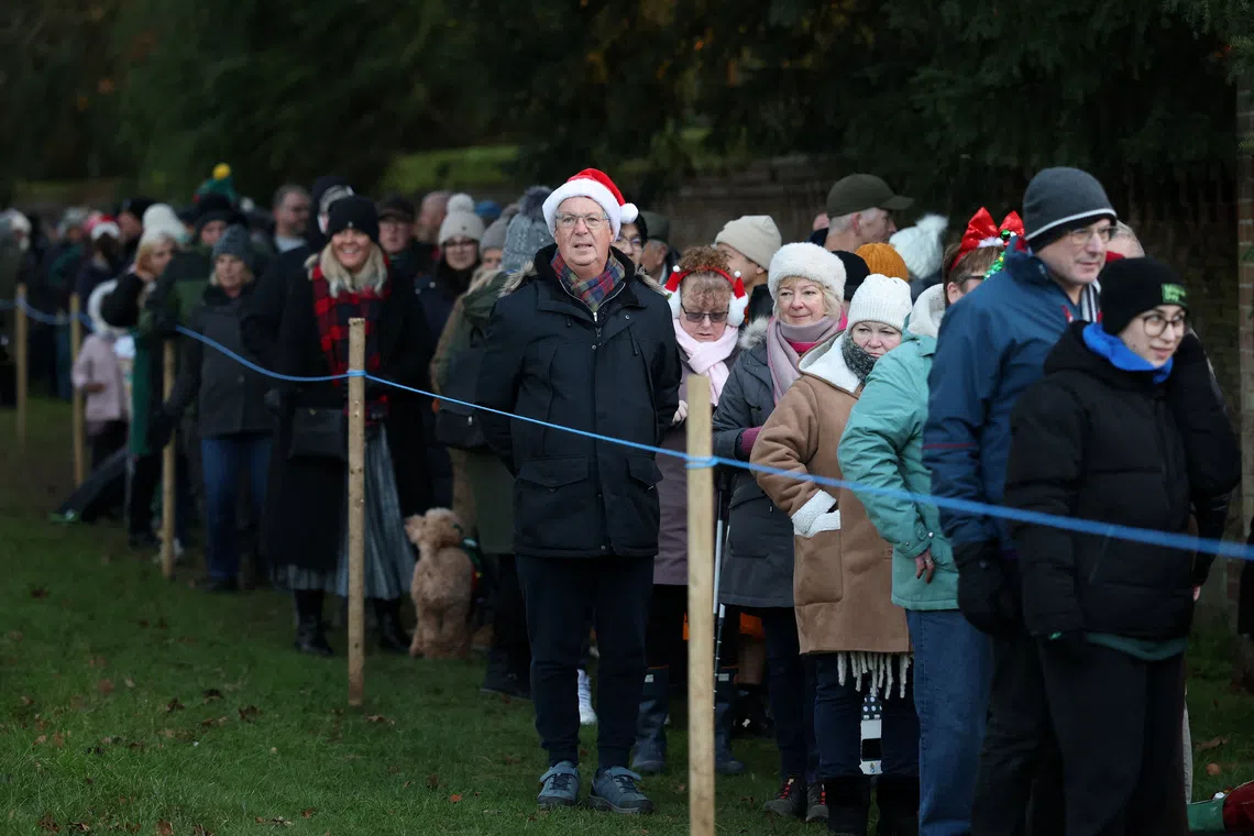 People gathering outside St Mary Magdalene's church ahead of Britain's King Charles and Queen Camilla’s attendance at the royal family's Christmas Day service.