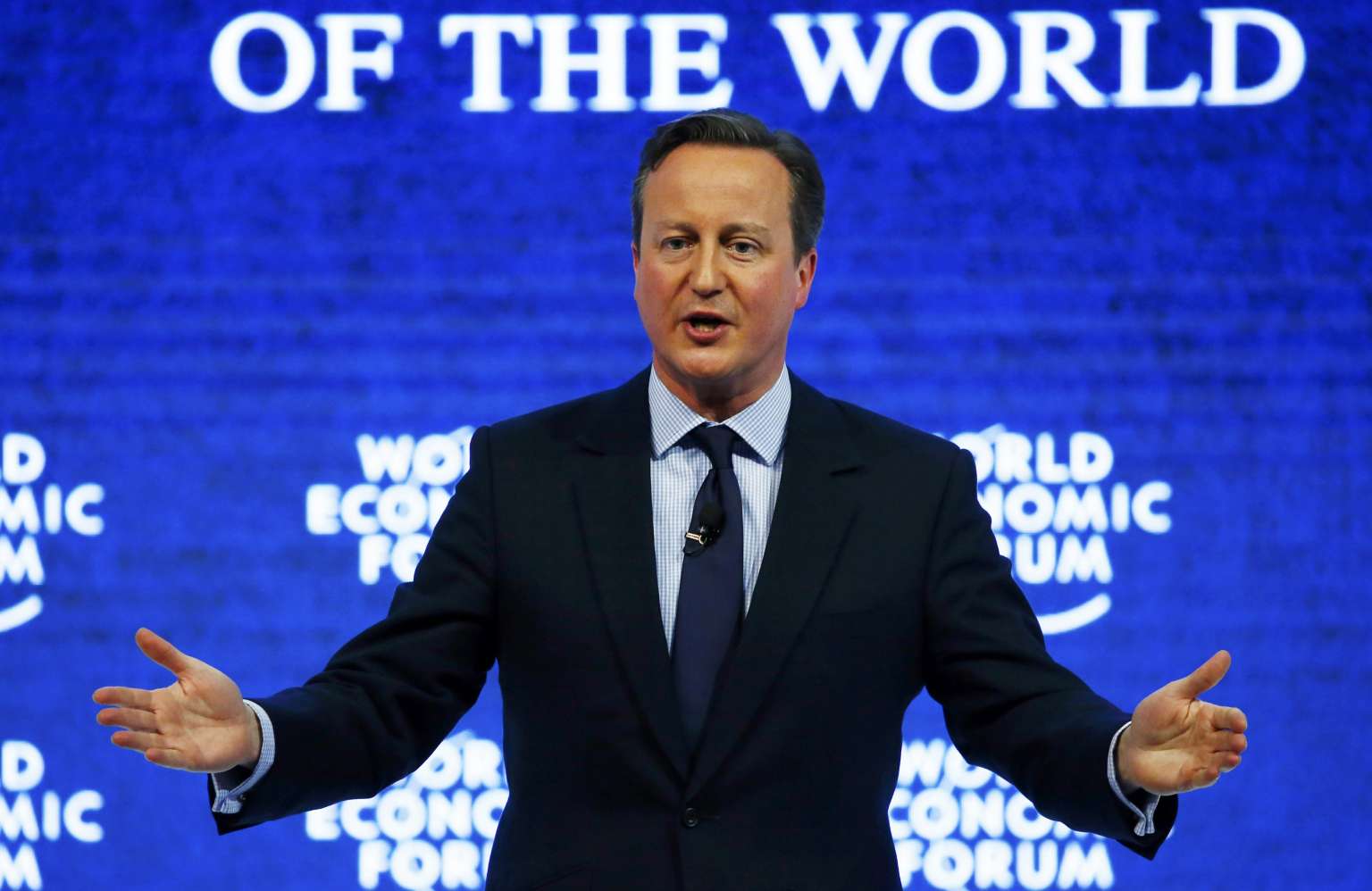 British Prime Minister David Cameron at the "Britain in the World" session of the World Economic Forum in Davos.