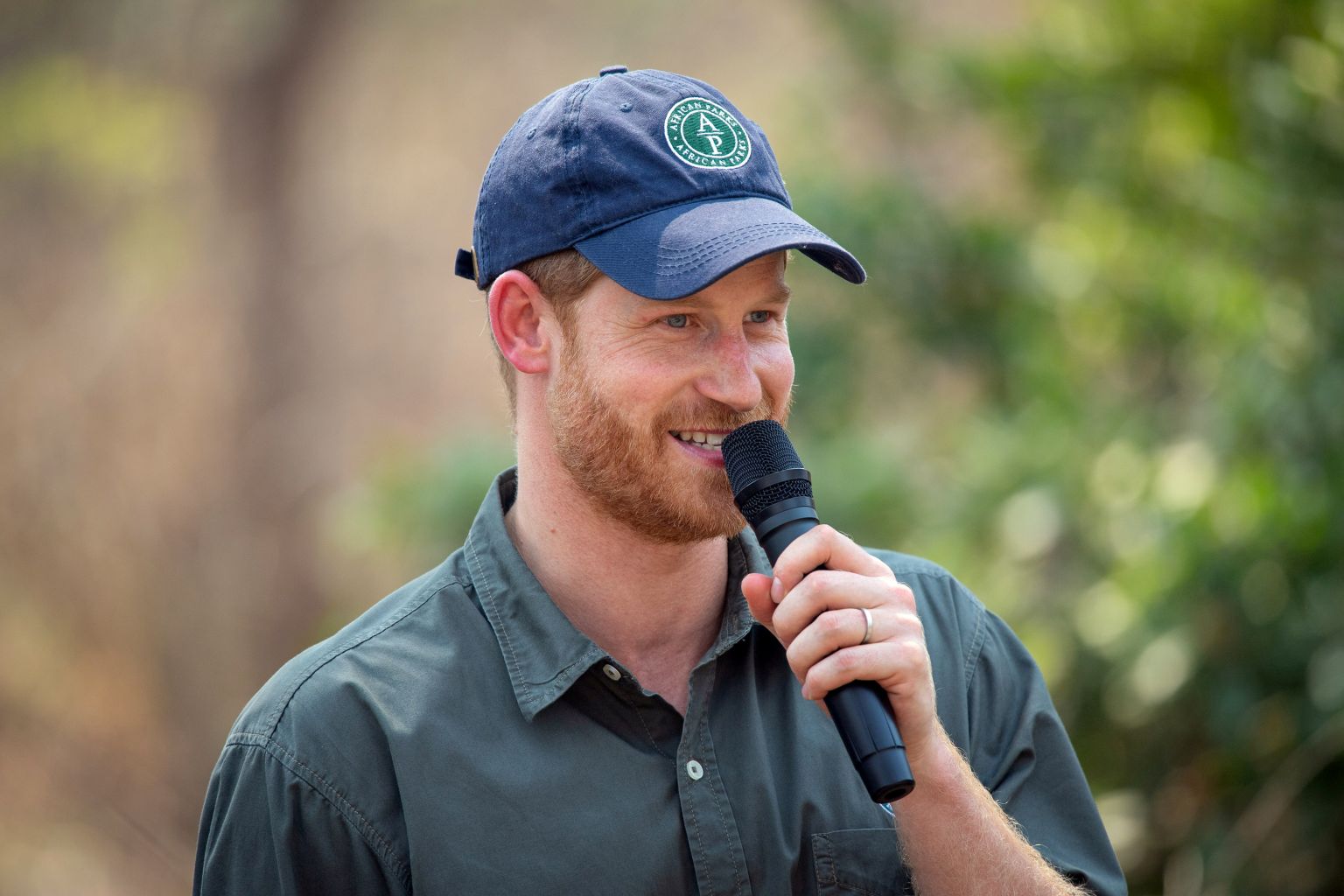 A September 2019 photo shows Prince Harry making a speech in Malawi.