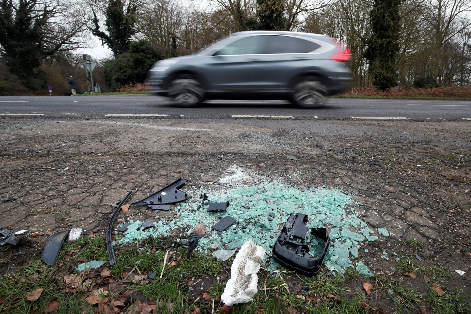 Debris seen at the scene where Prince Philip was involved in a traffic accident, near the Sandringham estate in eastern England, Britain, on Jan 18, 2019.