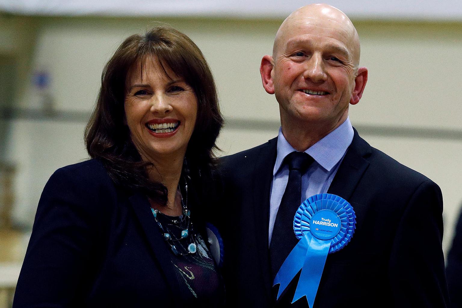 Conservative Party candidate Trudy Harrison standing with her husband Keith after winning the Copeland by-election in Whitehaven, Britain, on Feb 24, 2017.