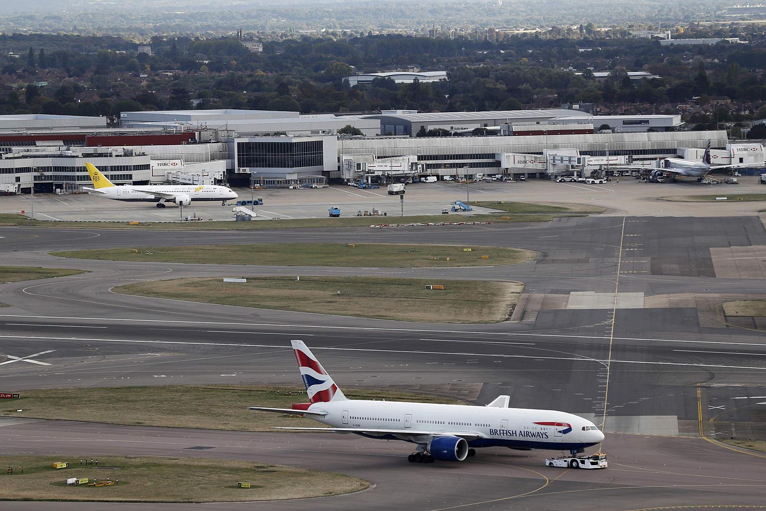 A British Airways passenger plane taxis near Heathrow Airport's Terminal 4, on Oct 11. 2016.