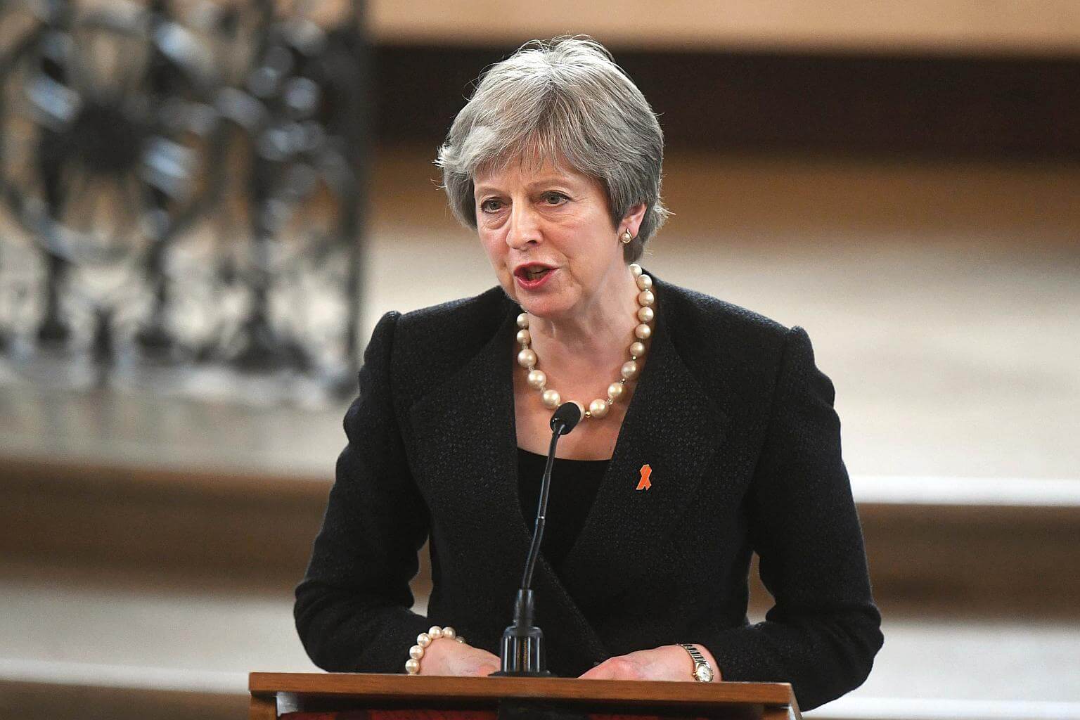 British Prime Minister Theresa May speaking during a memorial service in central London, Britain, on April 23, 2018.
