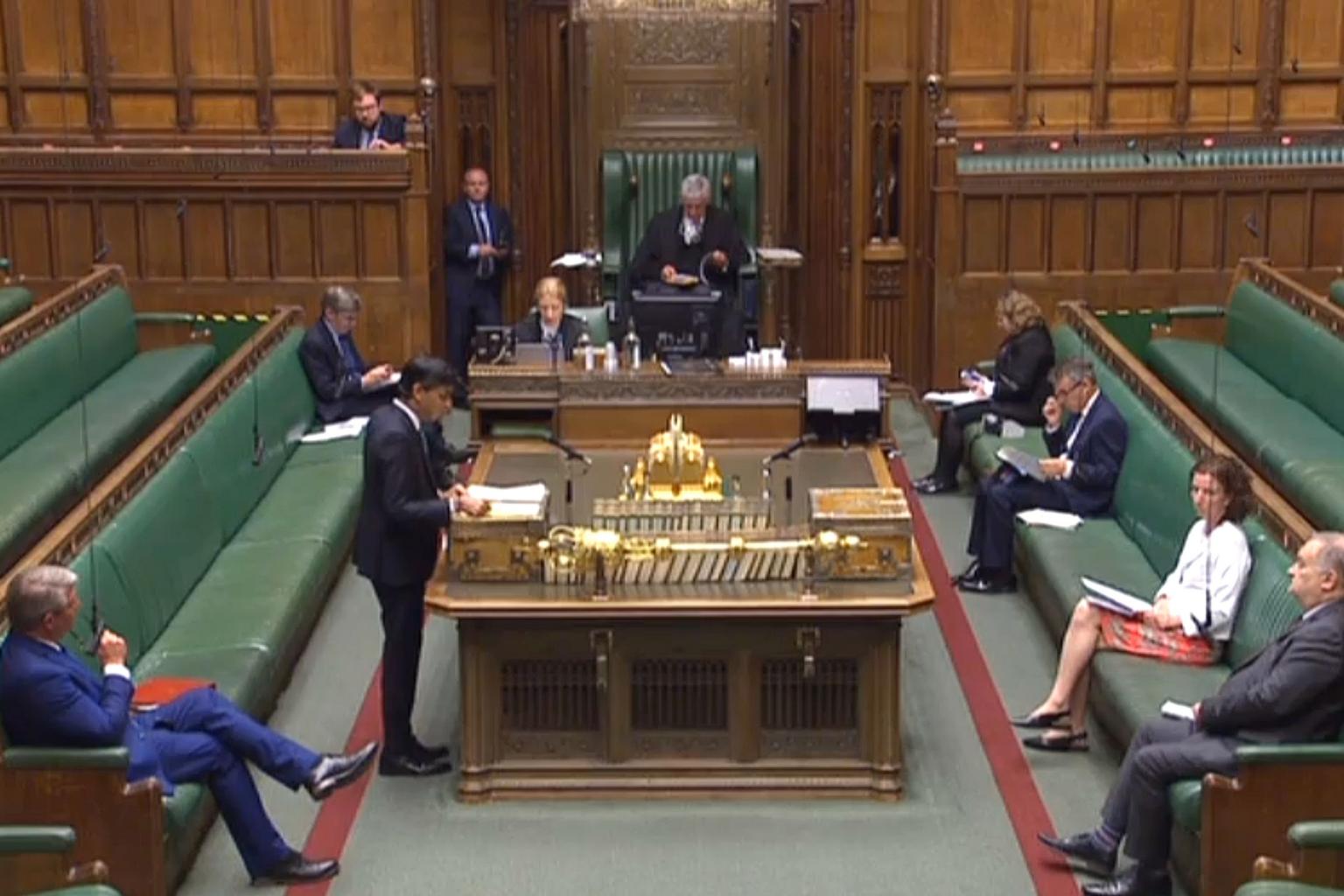 Britain's Chancellor of the Exchequer Rishi Sunak makes a statement in the House of Commons in London on April 27, 2020.