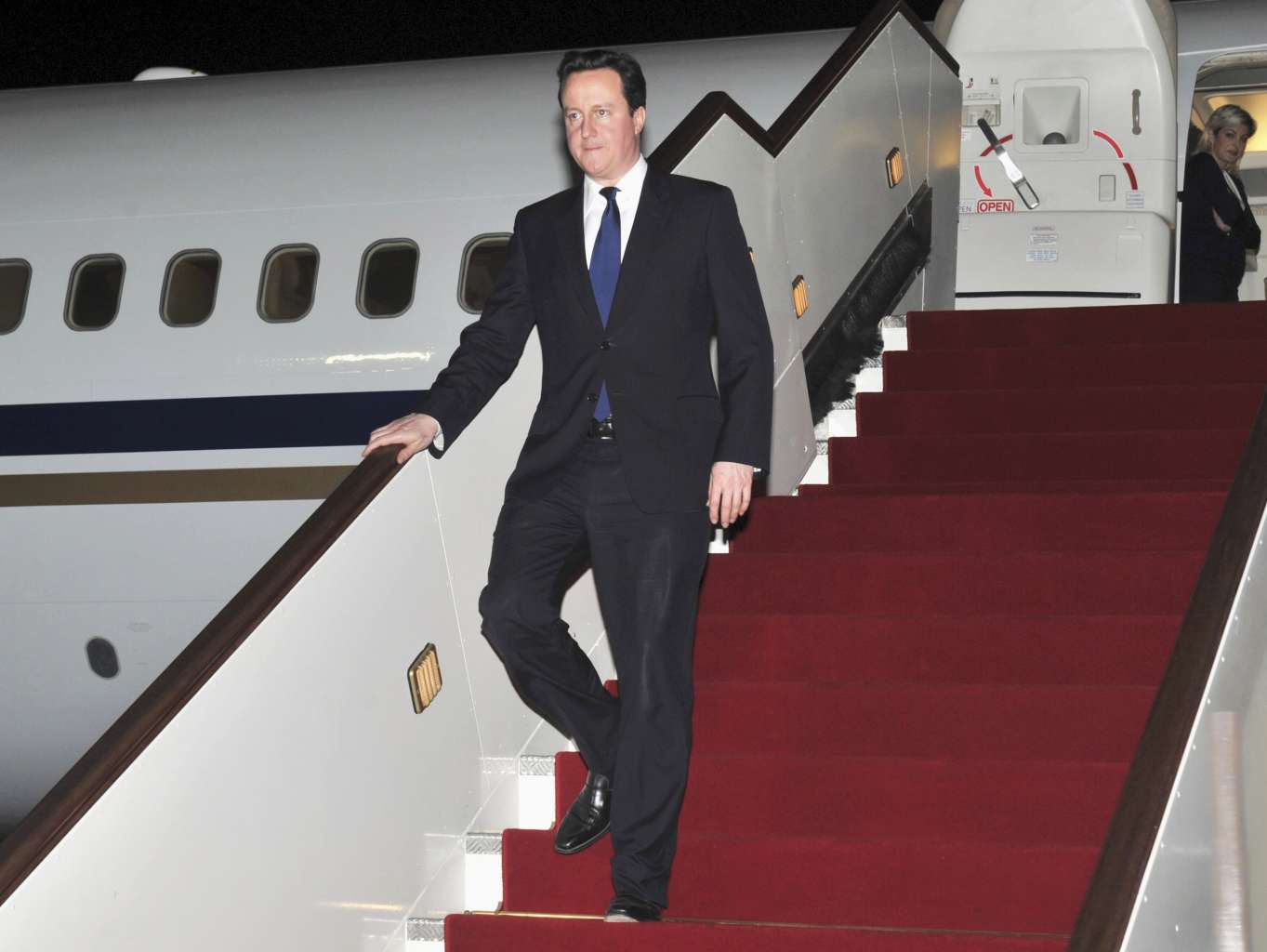 British Prime Minister David Cameron arriving in Muscat on Feb 13, 2011.