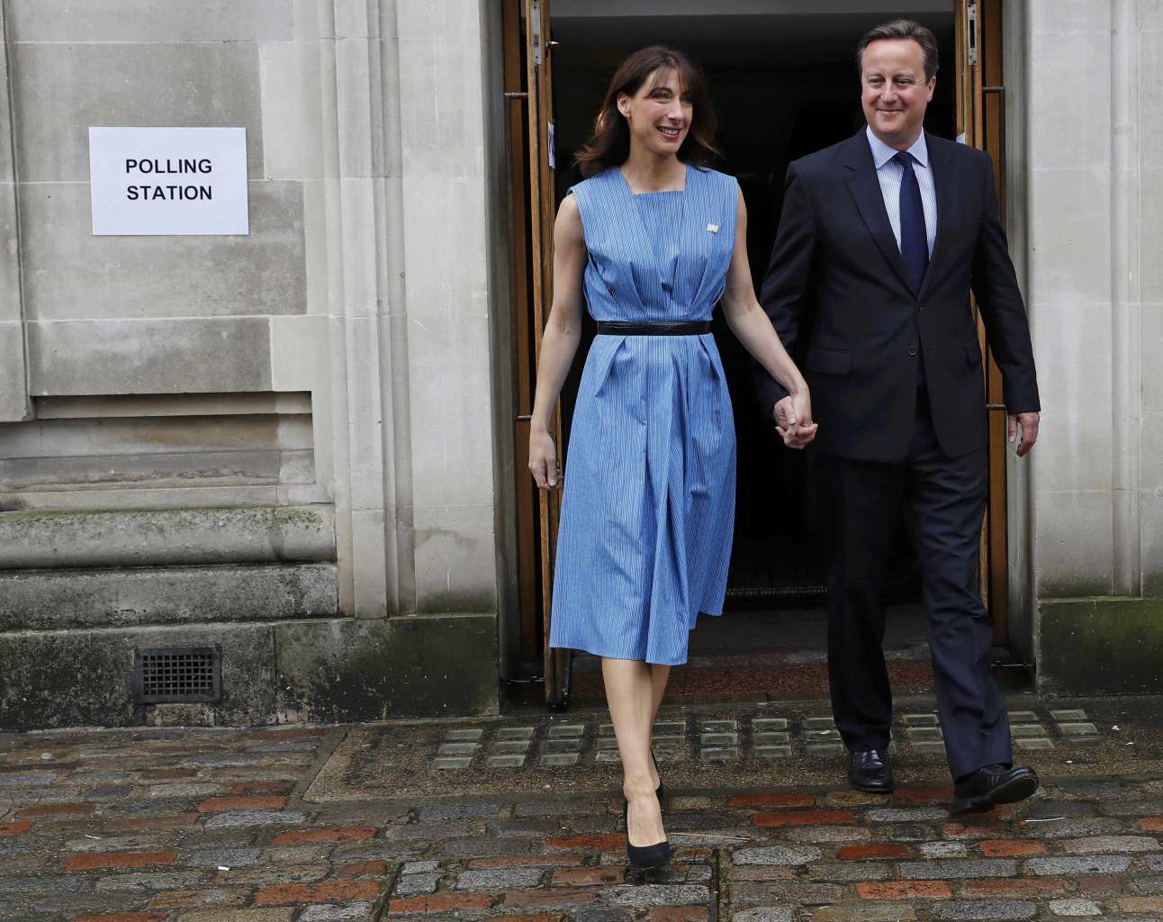 Britain's Prime Minister David Cameron and his wife Samantha leave after voting in the EU referendum, at a polling station in central London on June 23, 2016.