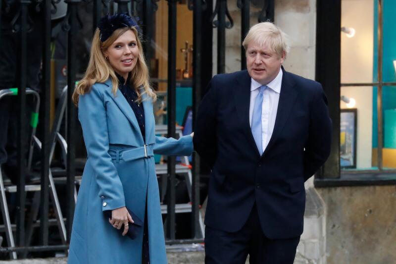 British Prime Minister Boris Johnson (right) and fiance Carrie Symonds in London.