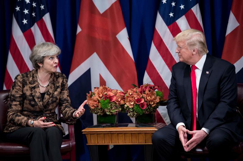 British Prime Minister Theresa May (left) and US President Donald Trump at a meeting at the Palace Hotel in New York, on the sidelines of the 72nd United Nations General Assembly on Sept 20, 2017.