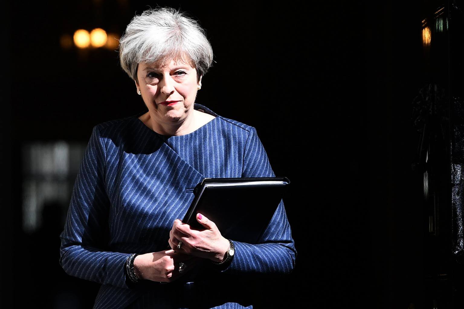 British Prime Minister Theresa May ahead of announcing the early election outside 10 Downing Street in London, Britain on April 18, 2017.
