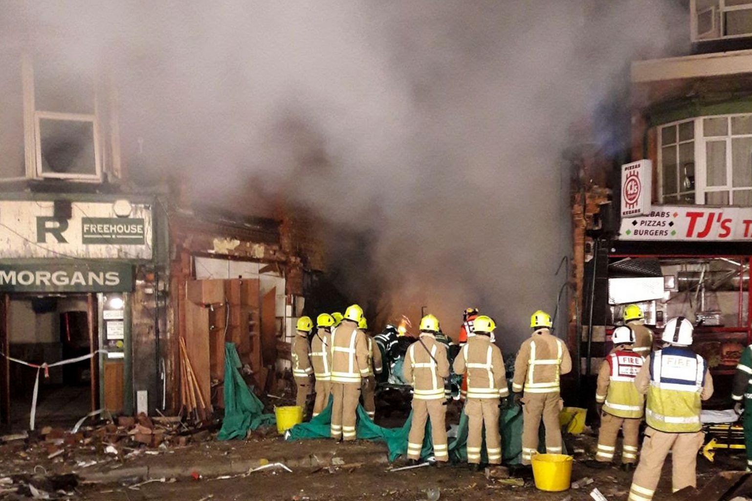 Members of the emergency services at the scene of the blast in Leicester.