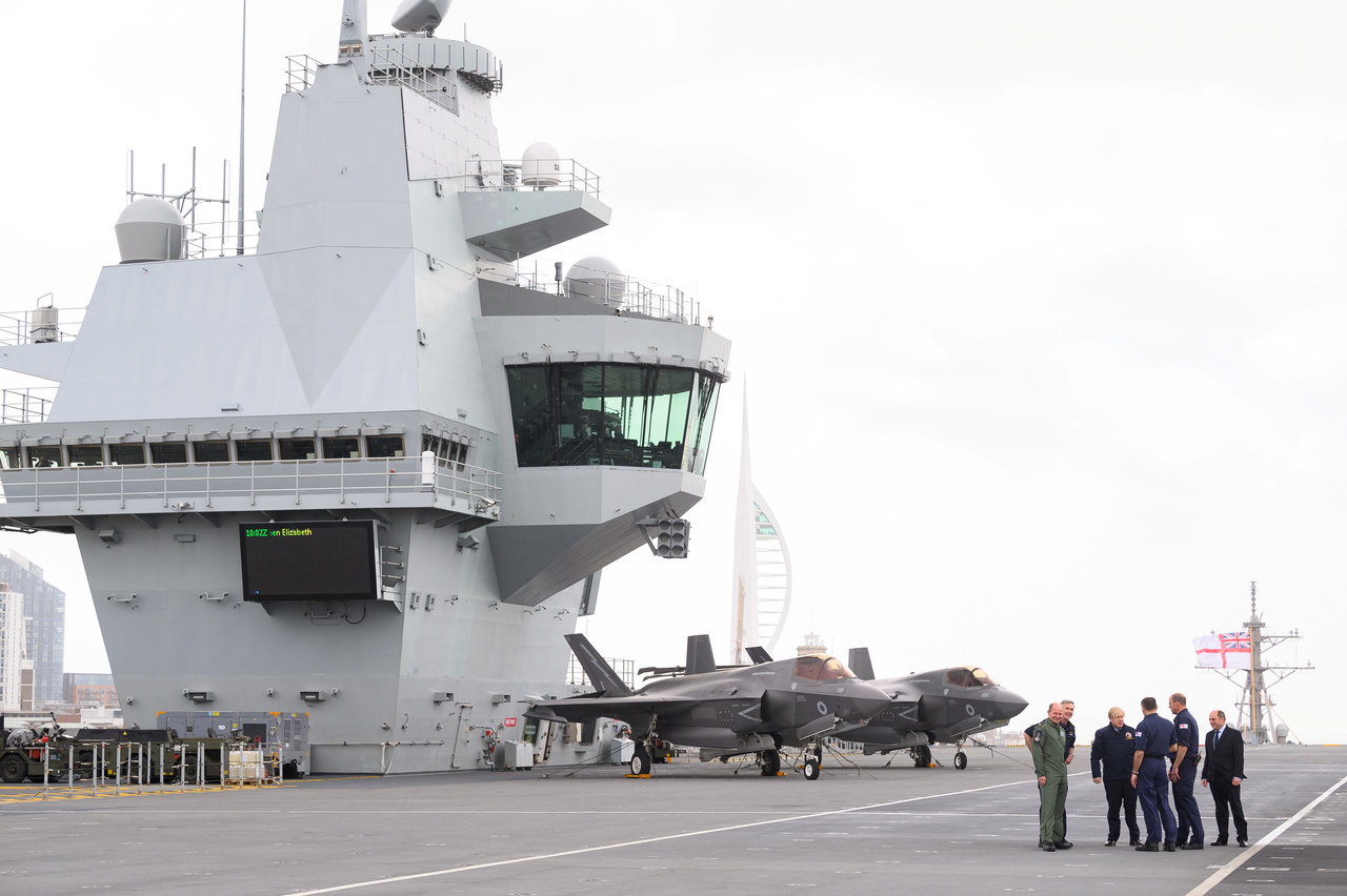 The 65,000-tonne Queen Elizabeth will carry eight British F-35B fighter jets and 10 US F-35s as well as 250 US marines as part of a 1,700-strong crew.