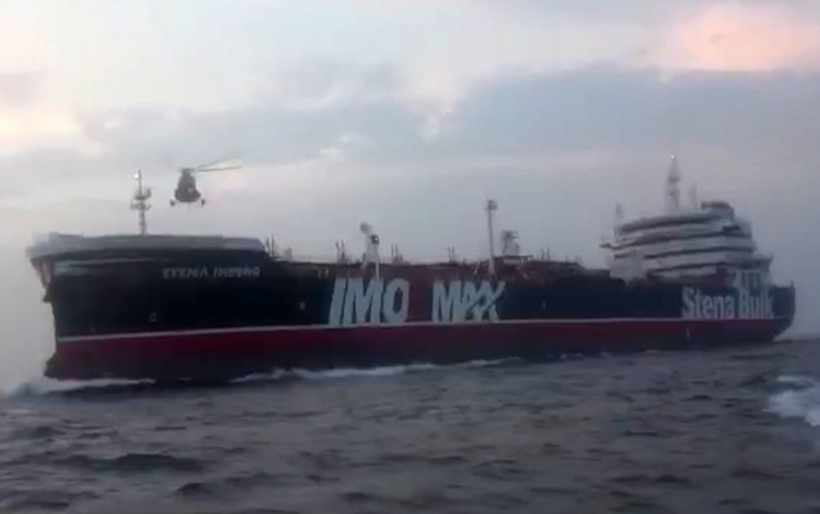 Members of Iran's Revolutionary Guard Corps boarding the British-flagged tanker Stena Impero in the Strait of Hormuz.