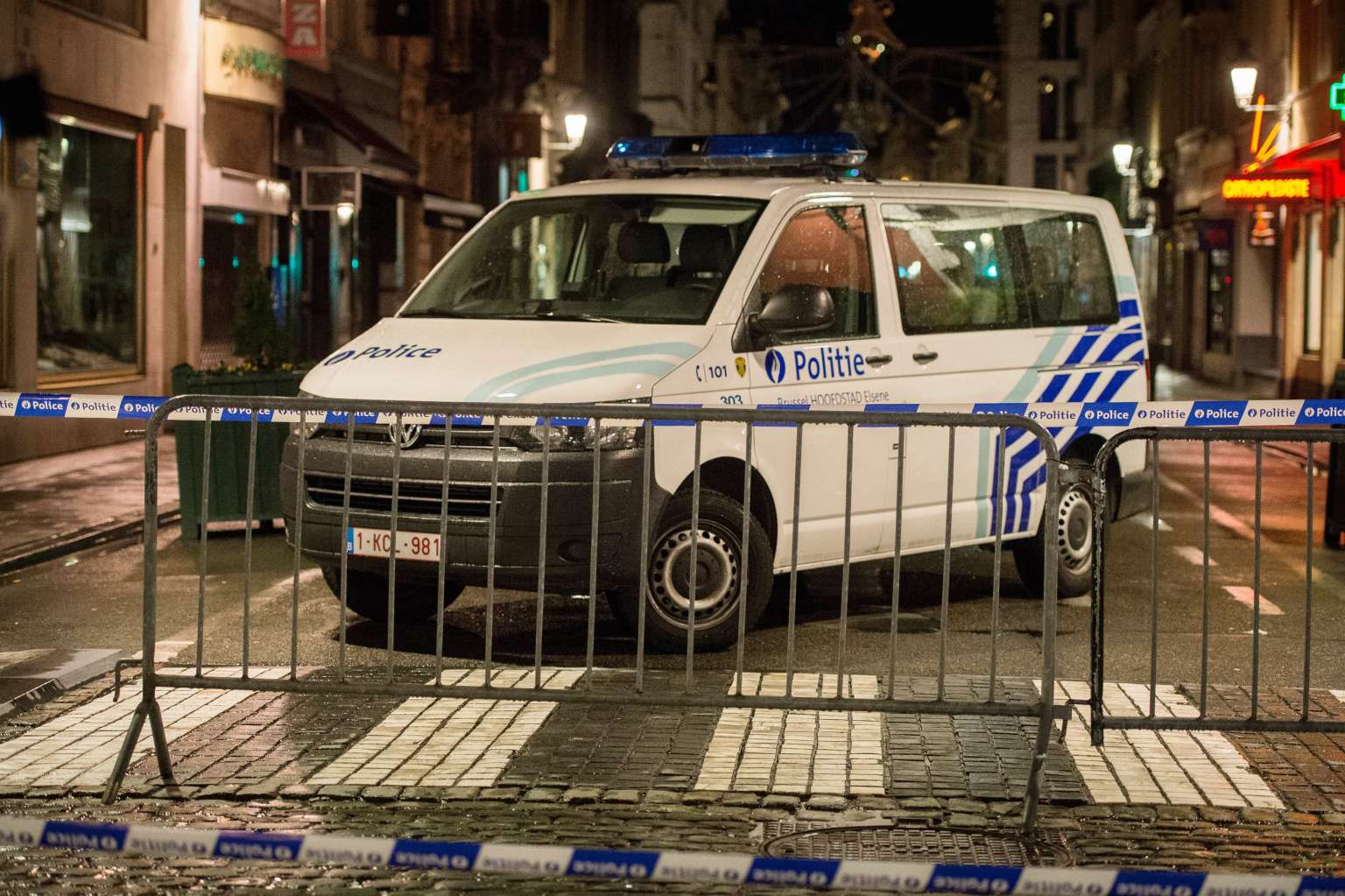 The Belgian police blocking a road leading to the city centre during a police operation in Brussels on Sunday.