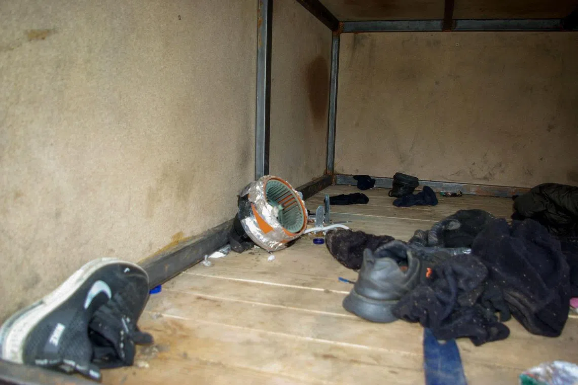 A police photo shows the belongings of some of the Afghan migrants in the cargo space of the abandoned truck.