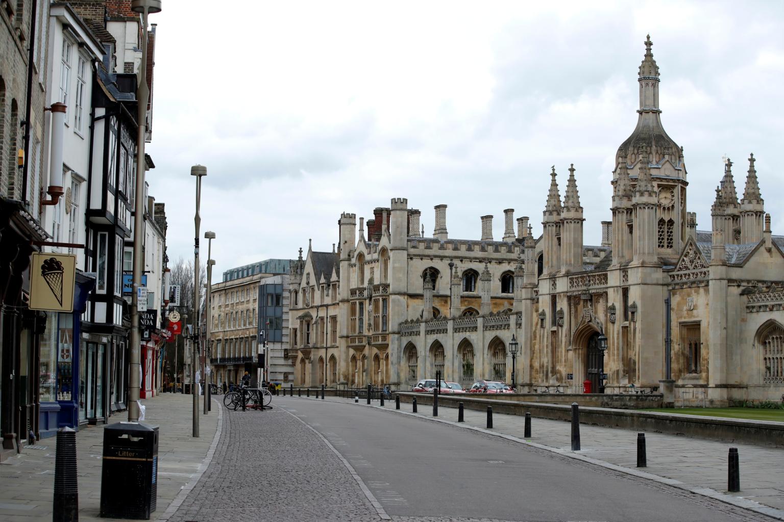 A deserted street is seen outside Cambridge University on April 1, 2020.