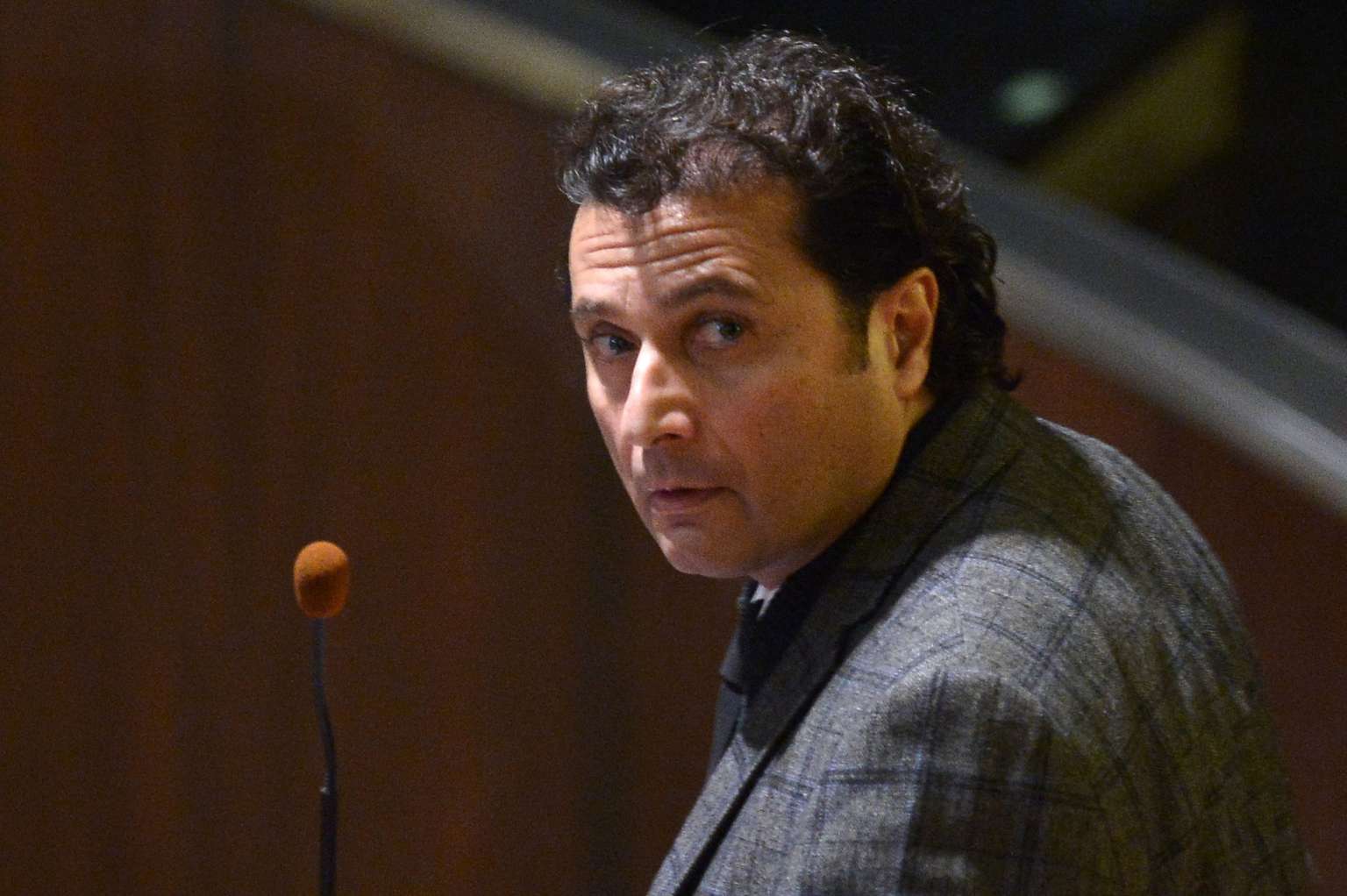 Costa Concordia's captain Francesco Schettino attending the court session for his final declaration on the last day of his trial, in Grosseto, Italy, on Feb 11, 2015.