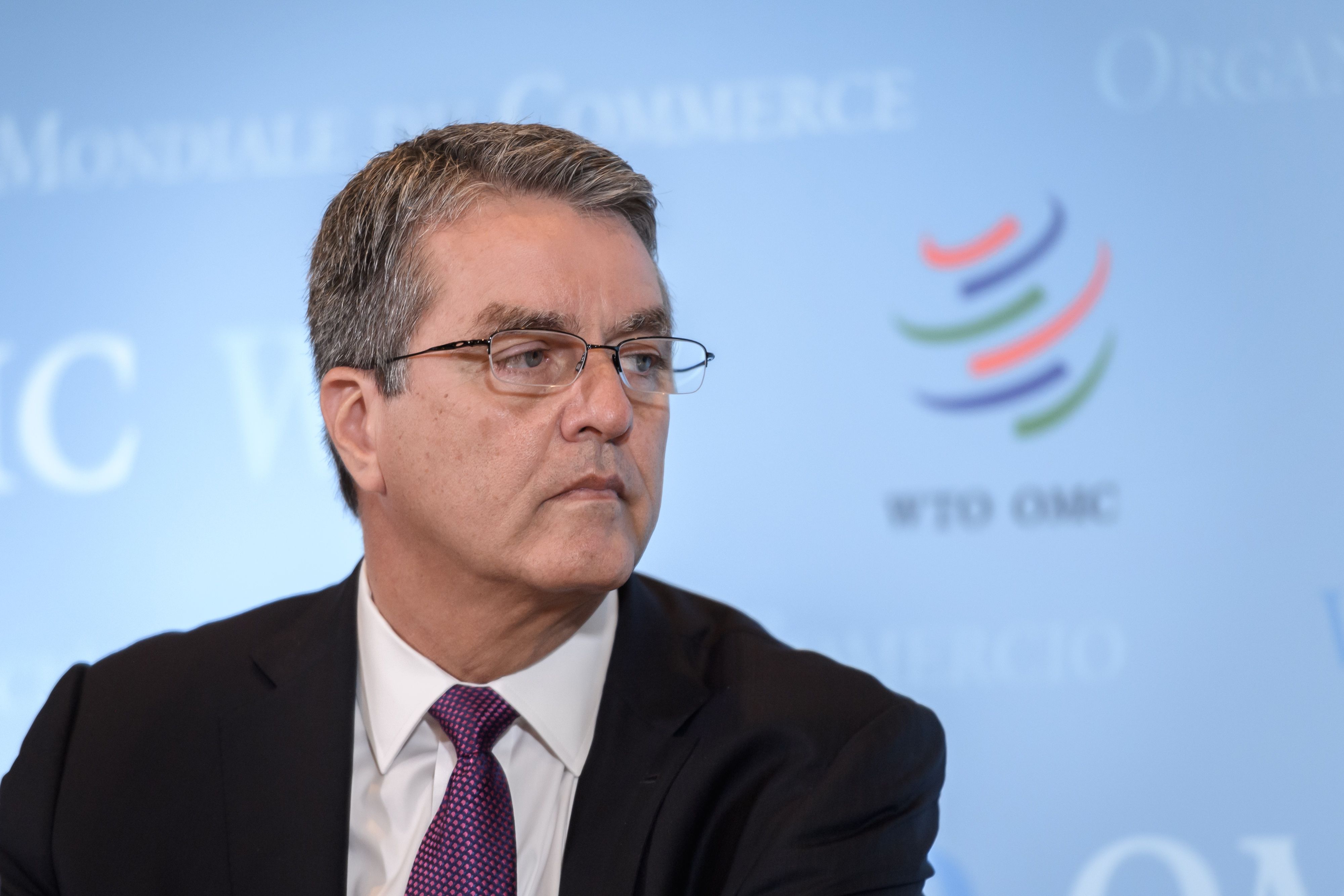 Outgoing World Trade Organization director-general Roberto Azevedo gives his last press conference in Geneva on July 23, 2020.
