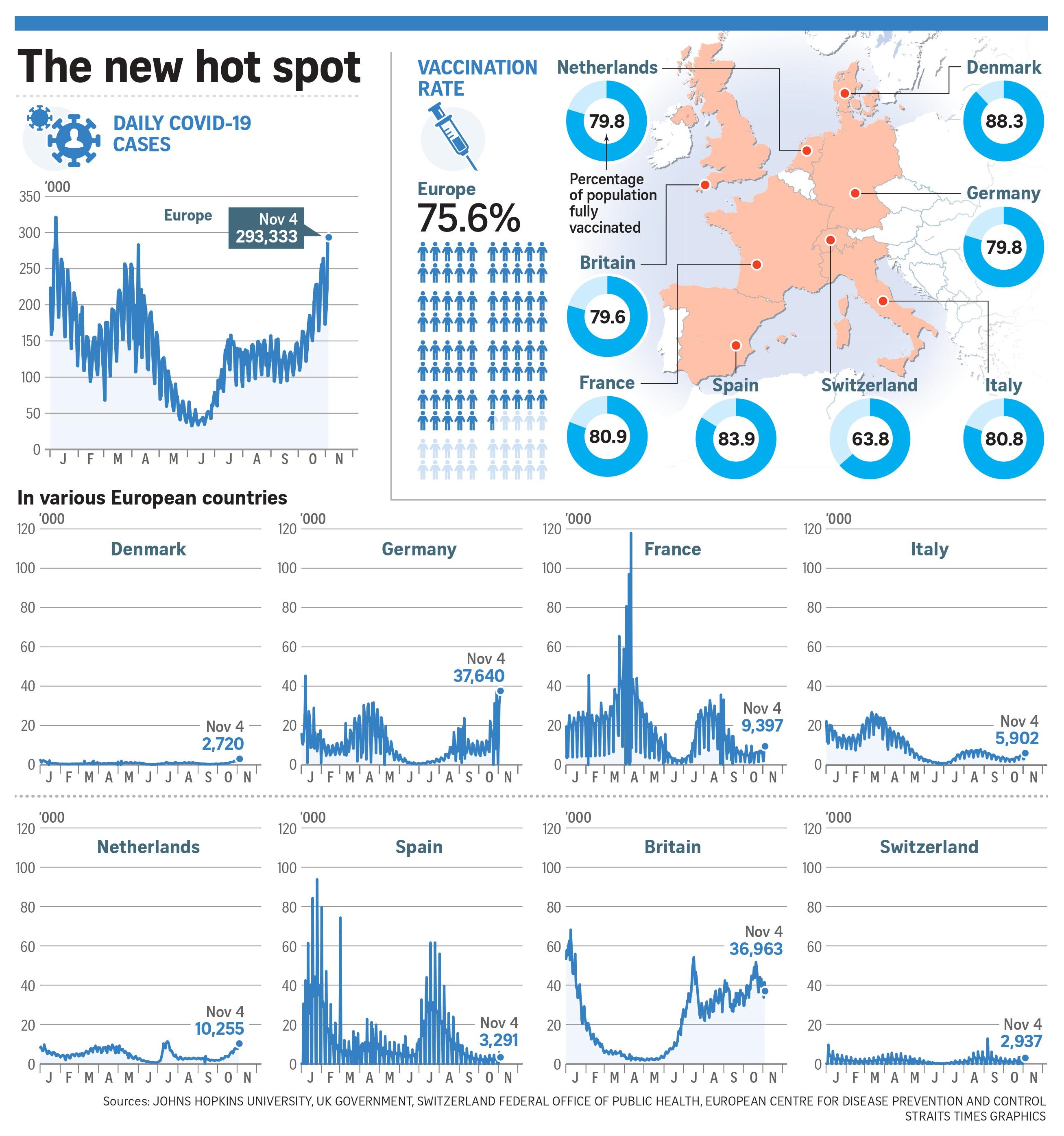 Throughout Europe, which last week accounted for nearly 60 per cent of the world's new coronavirus infections, contagion levels are becoming so high that the World Health Organisation (WHO) on Thursday (Nov 4) warned of the possibility of half a million deaths in the next three months.