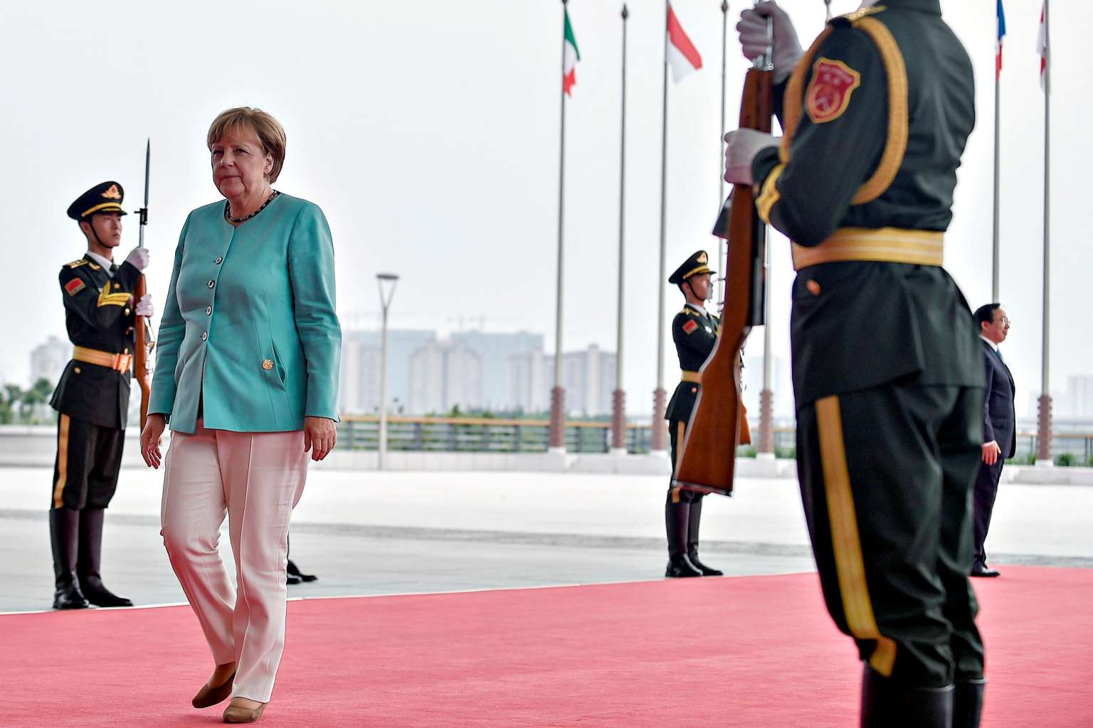 German Chancellor Angela Merkel arrives at the G20 Summit in Hangzhou, China, on Sunday (Sept 4).