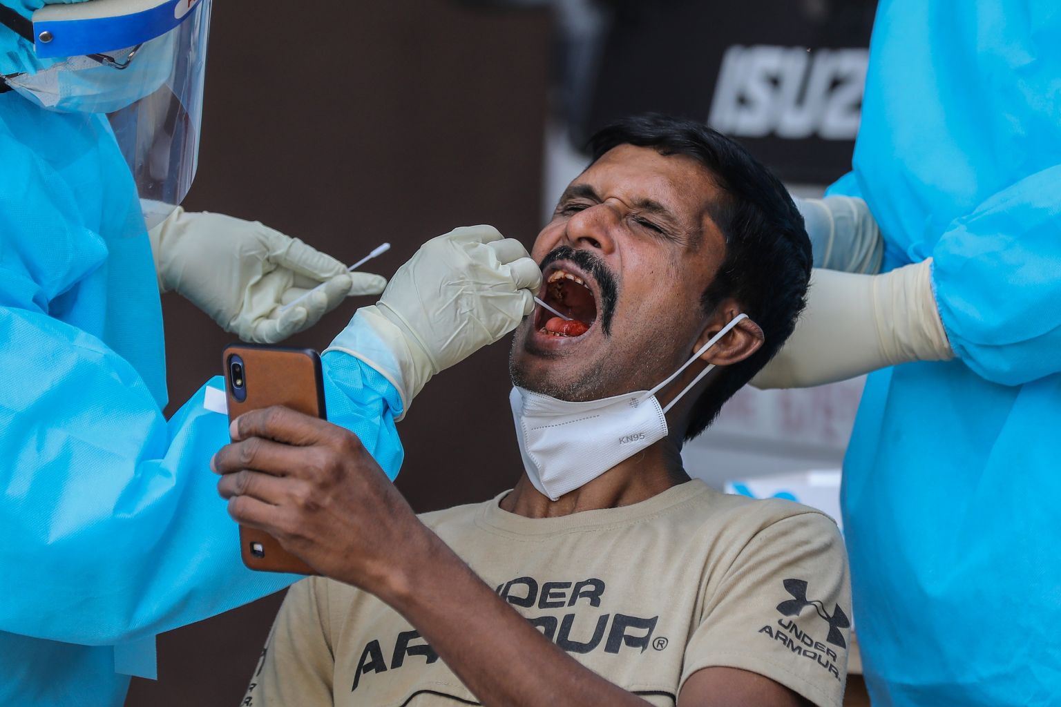 A man undergoes a Covid-19 swab test in Colombo, Sri Lanka, Jan 26, 2021.
